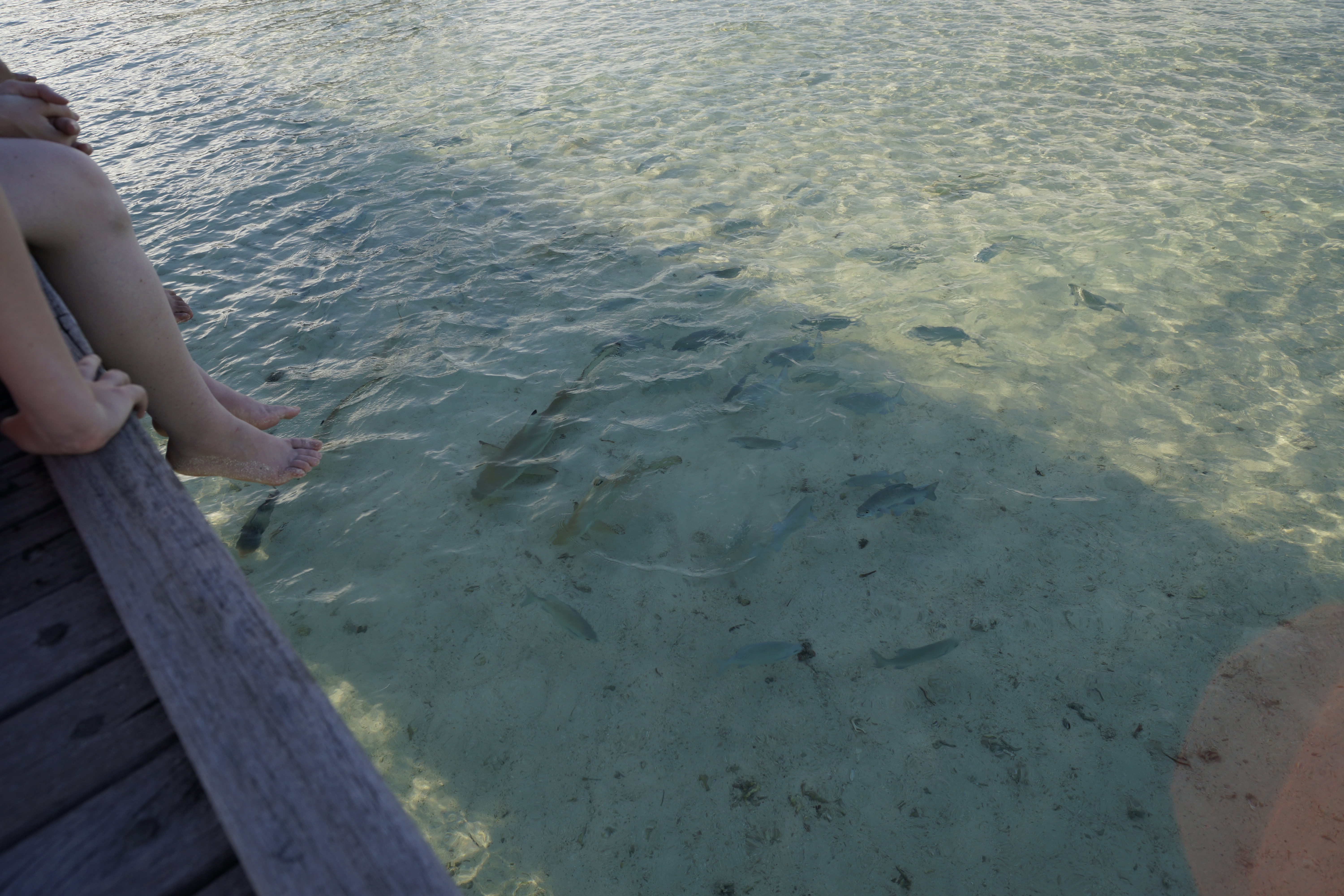 I dag var jeg og pappa og så på mating av haier! Haiene svømmer også forbi oss når vi bader, men de er ikke farlige, og de er ikke så mange som når de blir matet.