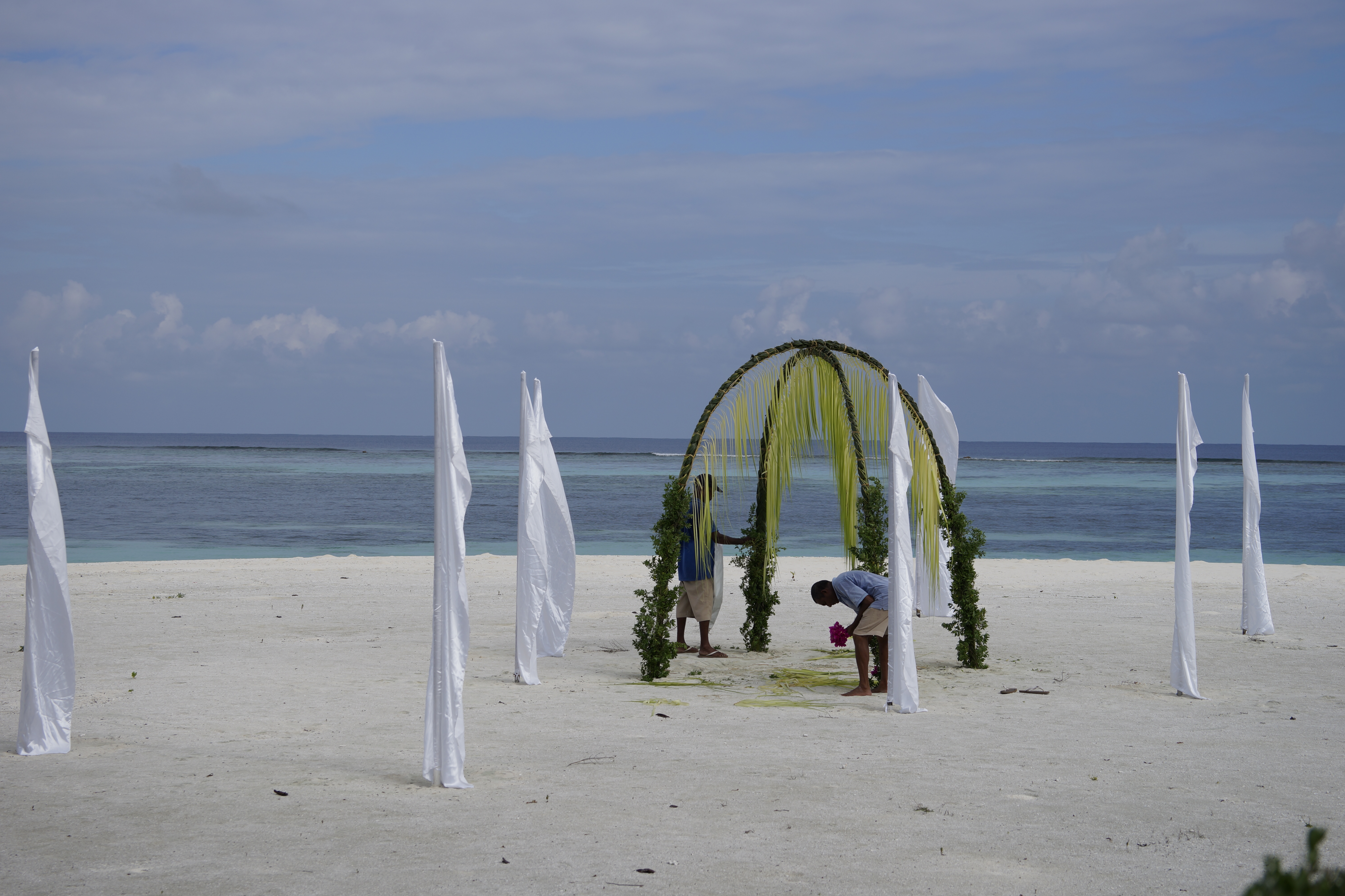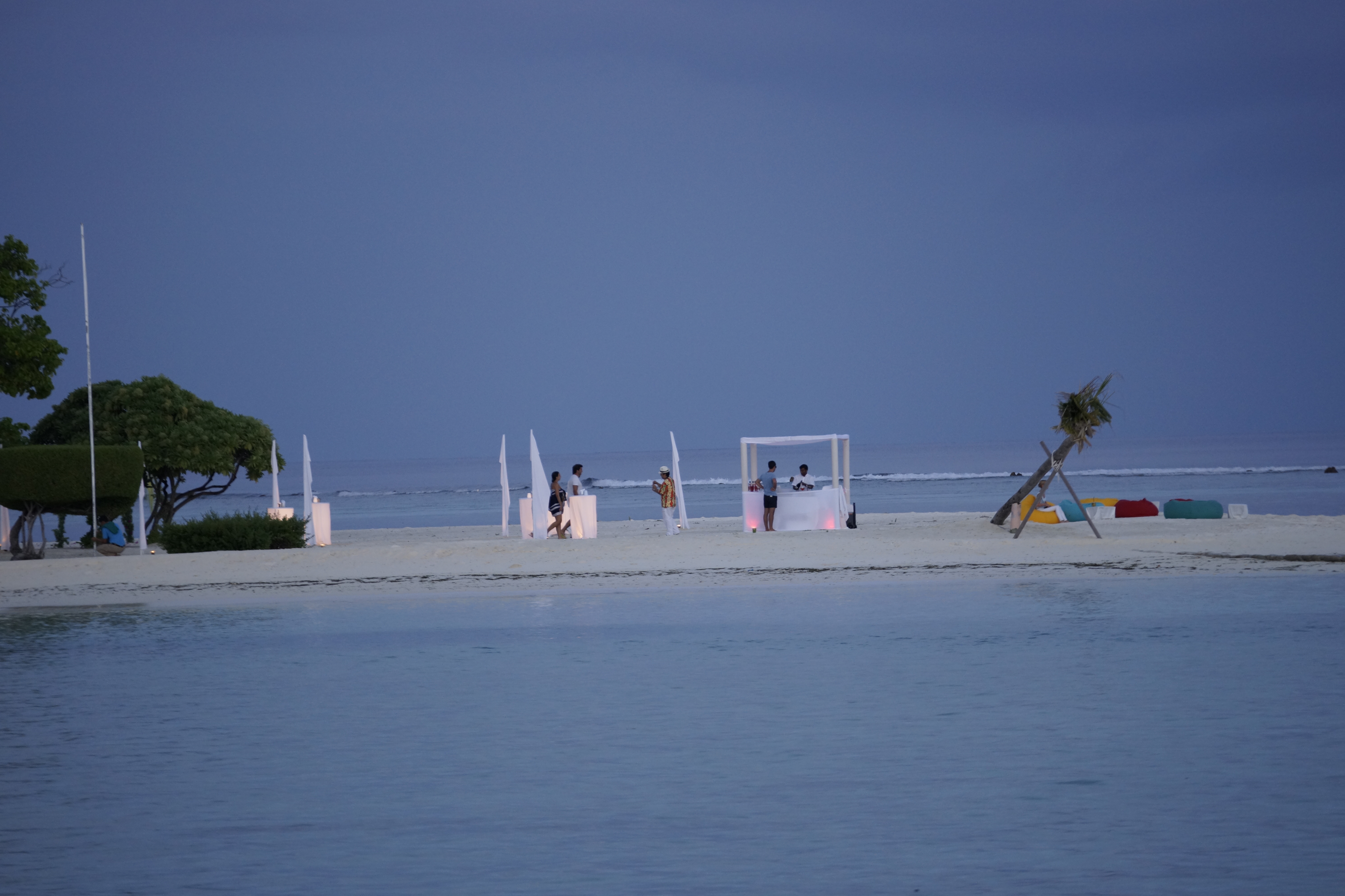 I går så vi et brudepar som hadde giftet seg og ble fotografert ved bassenget der vi satt. Senere på kvelden hadde vi utsikt til et bryllup inne på stranden. Maldivene er veldig romantisk!