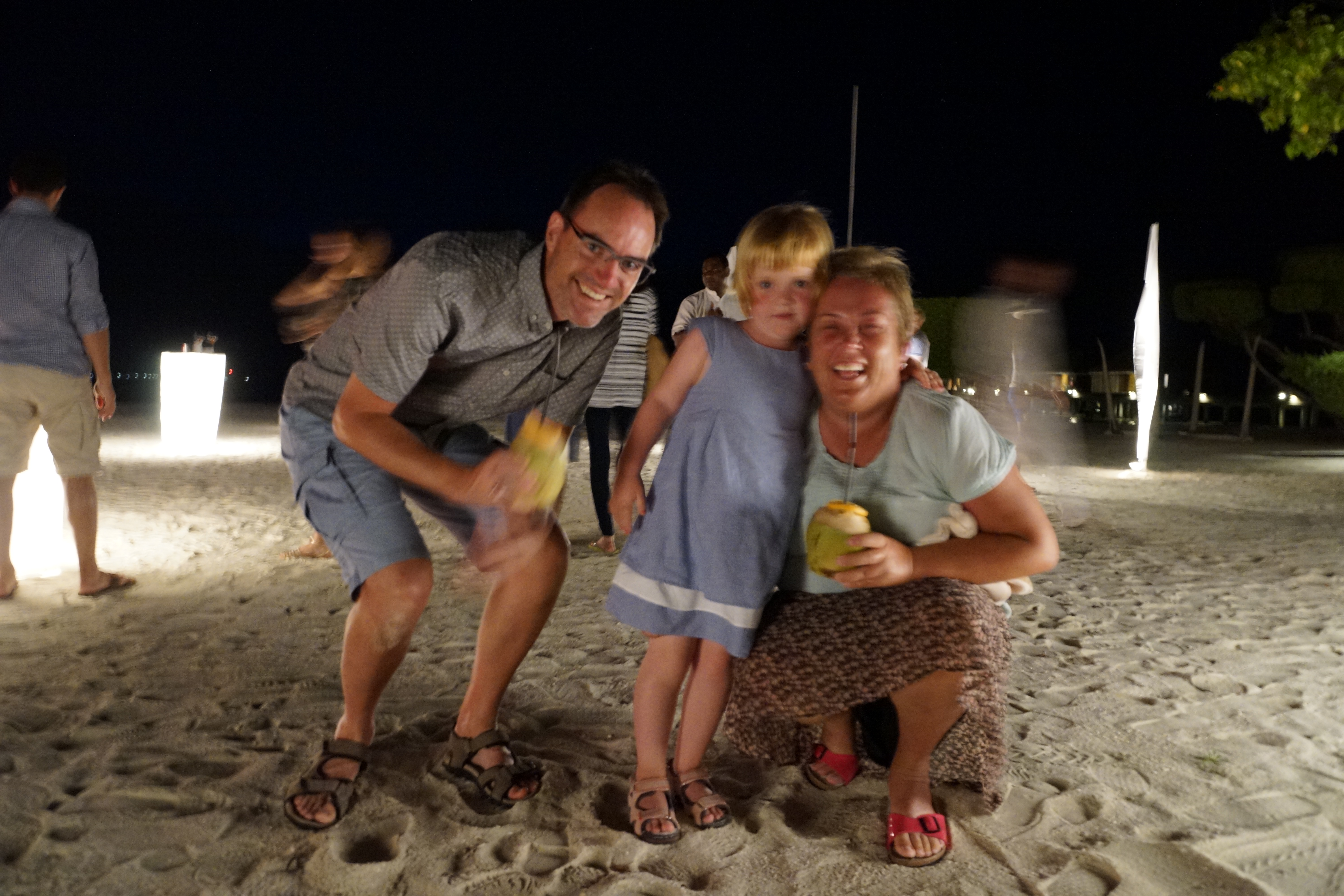 Før middagen hørte vi romantisk musikk inne fra stranda på øya. Vi kunne se at de hadde pyntet og det var en mann som spilte saxofon. Vi trodde dette var for de som hadde giftet seg tidligere, men når vi kom inn fra brygga vår ble vi invitert inn på festen!