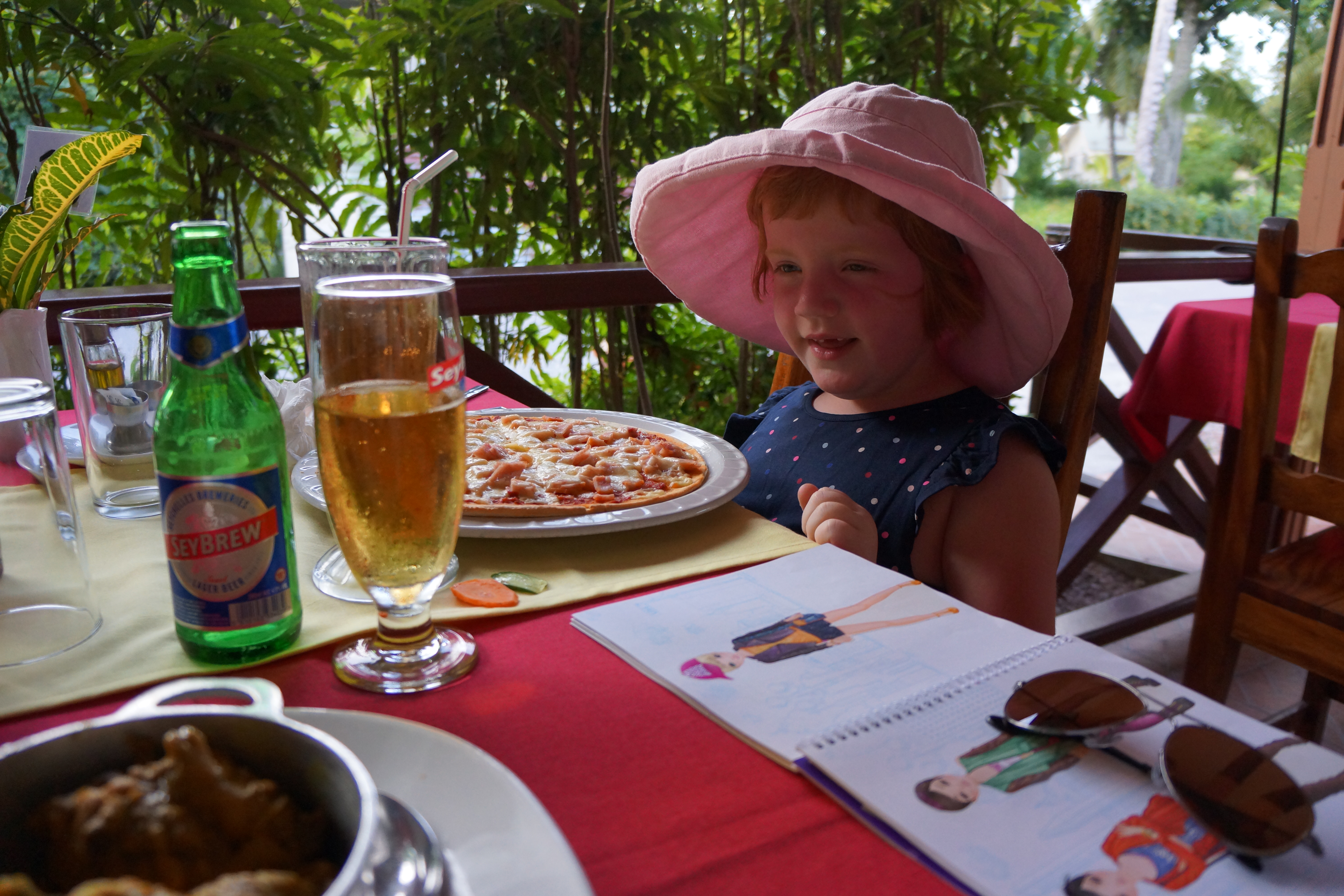 På ettermiddagen tok vi turen til den stranden Anse La Réunion vi var på i går og på veien plukket vi opp is. Siden Seychellene ligger like ved ekvator er solen her veldig sterk. Vi må derfor bruke masse solkrem, men selv det sterkeste vi har med, som heter faktor 50, er ikke nok. Derfor har jeg på en t-skjorte når jeg bader for å unngå å bli solbrendt.