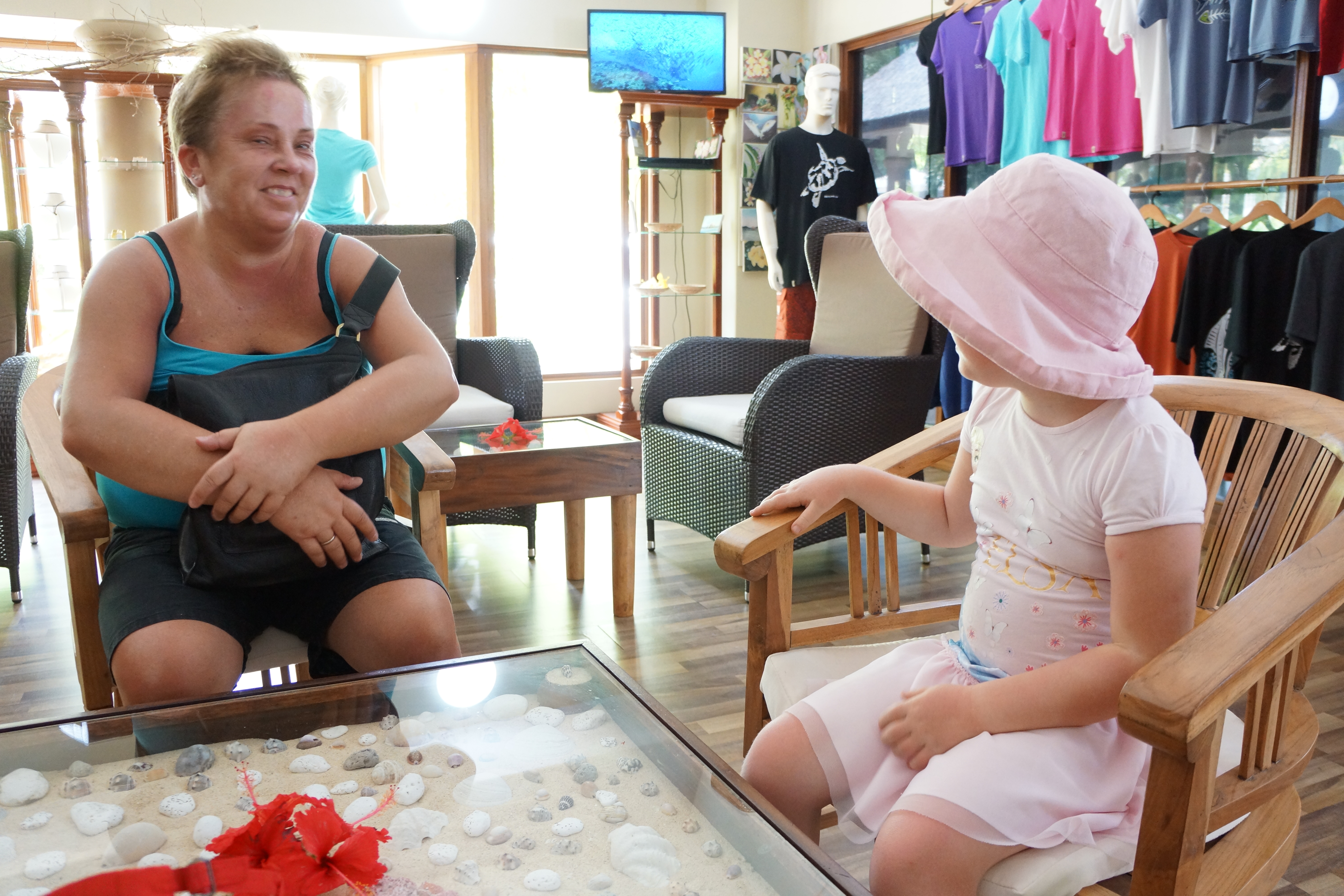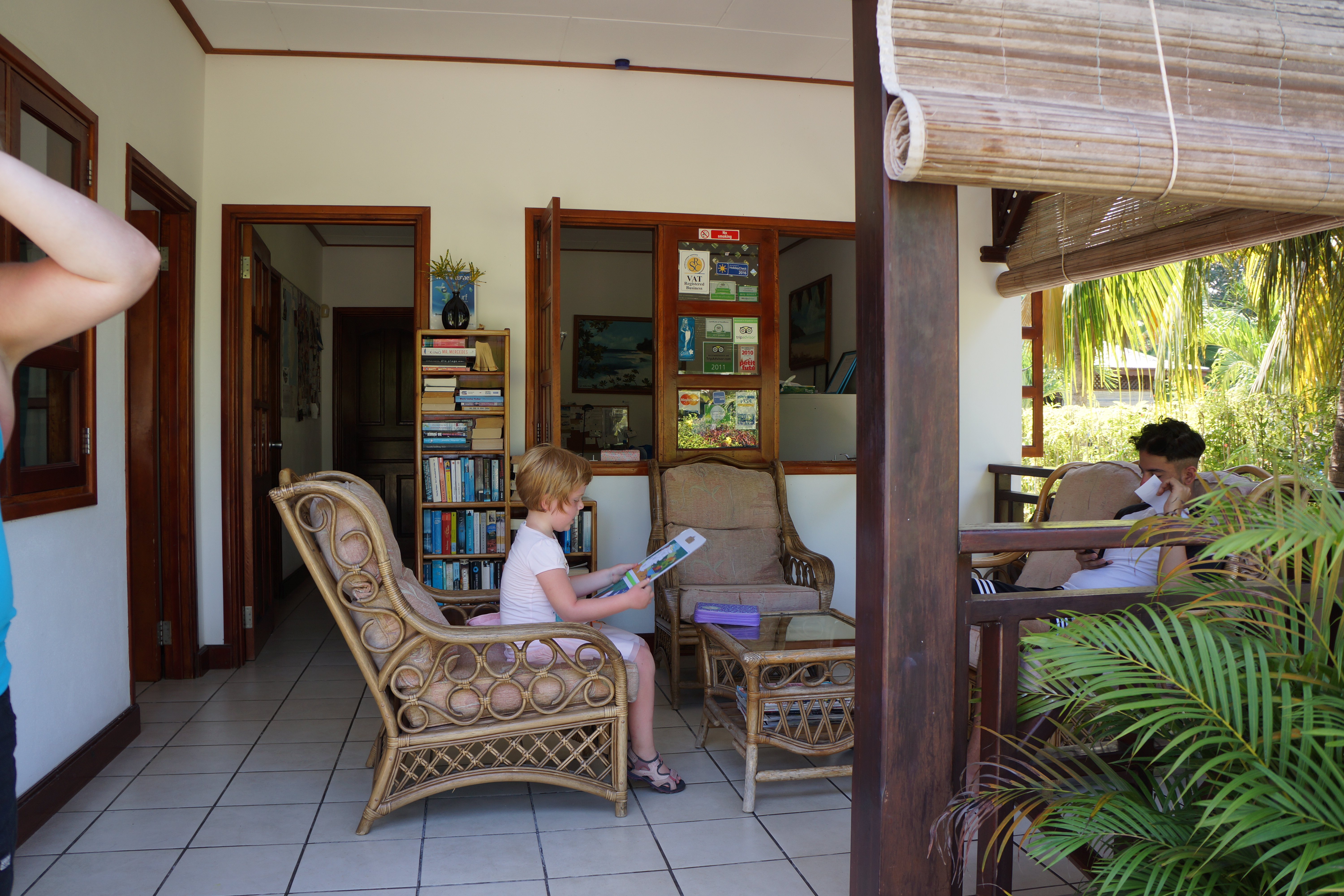 Resepsjonen på Fleur de Lys mens vi venter på ferje til Praslin.