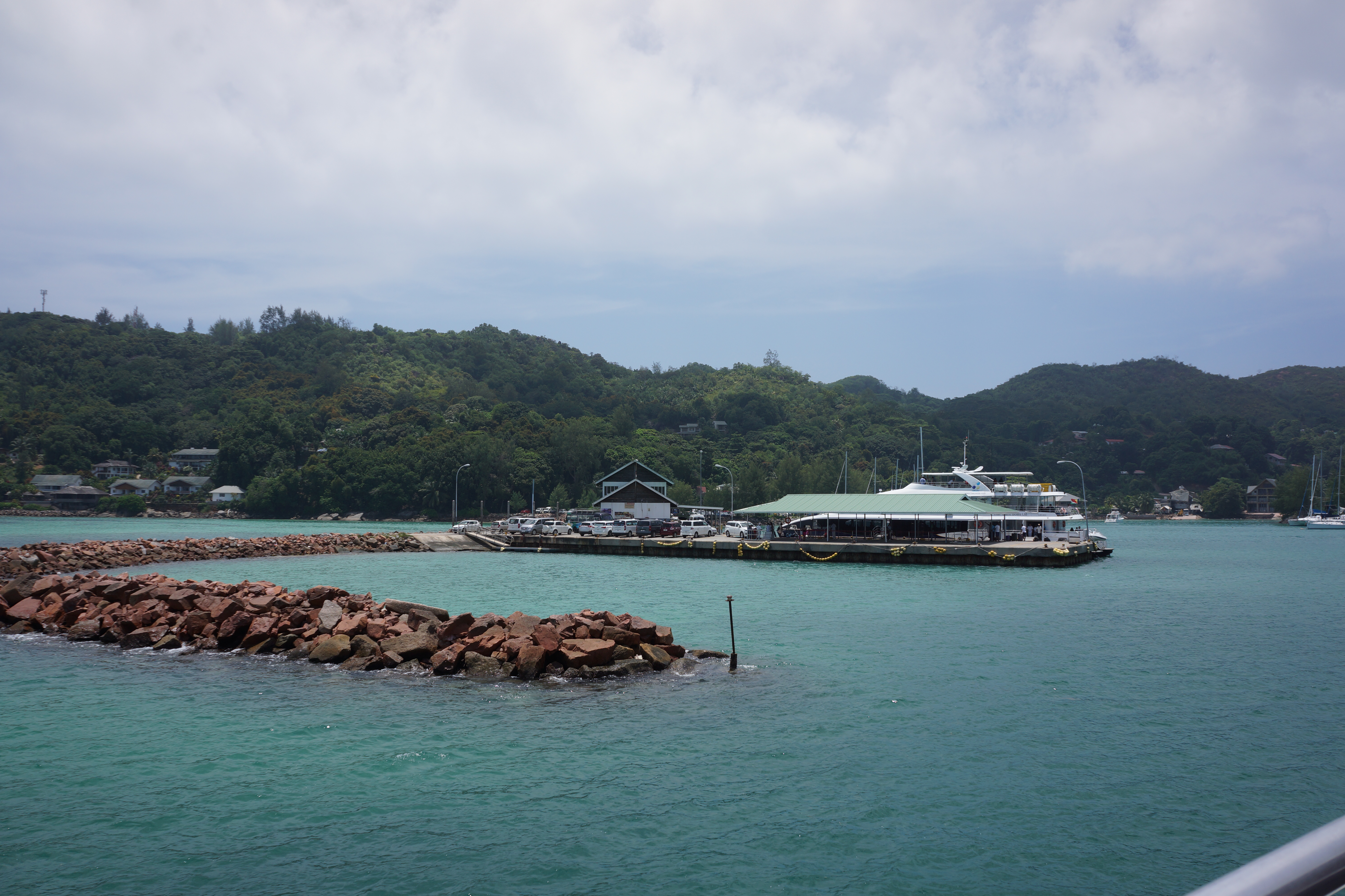 Etter å ha ventet en stund i resepsjonen på Fleu de Lys, skulle vi først ta en liten ferje som bruker ca 15 minutter. I seychelliske minutter brukte vi nok over en time på å vente, komme ombord, ordne med kofferter, og komme inn i taxi på vei til hotellet.