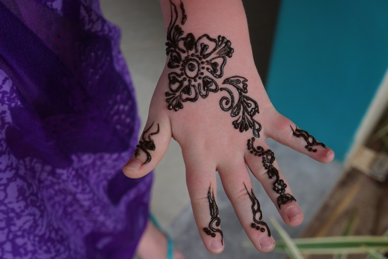 Her om dagen fikk jeg henna-maling av Francine som jobber på kids club. Hun var kjemepflink til å tegne, og jeg måtte ikke bade på over en time. Akkurat det var vanskelig, for jeg elsker å bade her nede! Etterhvert tørket malingen og jeg har fortsatt et mønsker på hånden.