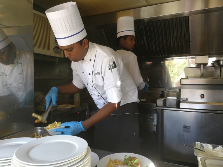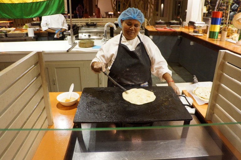En ting vi koser oss med her på Tamassa er den gode maten. I fjor møtte vi kokkene Subash og Mahesh, men i år er Subash på et annet hotell, mens Mahesh fortsatt er her. Mahesh er veldig flink med glutenfritt til mamma, og det er viktig siden andre kokker og servitører ikke er så kjent med dette. Det er også Mahesh som har ordnet så jeg får farata hver dag 🙂
