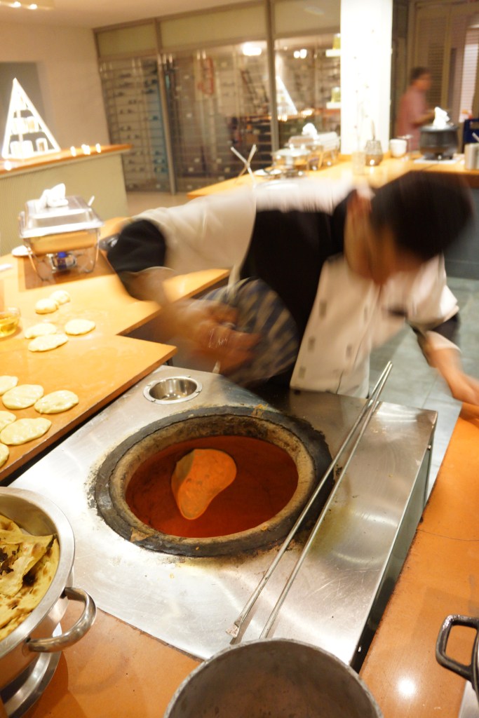 En liten oppdatering etter indisk middag: I dag var det indisk tema på middagen og da lager de nan-brød i en spesiell steinovn eller gryte som varmes med ved. De har deigen på en fille og «klasker» den inn i veggen til gryta. Nede i gryta er det veldig varmt og brødet blir stekt på 1-2-3. Det blir veldig godt!