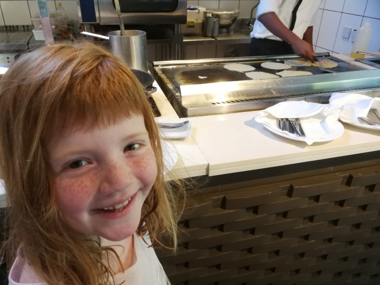 Ellers er maten her nede helt topp, fra omeletten til frokost, African burger i Food Truck til lunsj, is fra iskiosken, afternoon tea & pancakes, til middag med ulike temaer. Vi har vært gjennom asiatisk, middelhavs, mauritisk, arabisk, og i dag er det indisk.