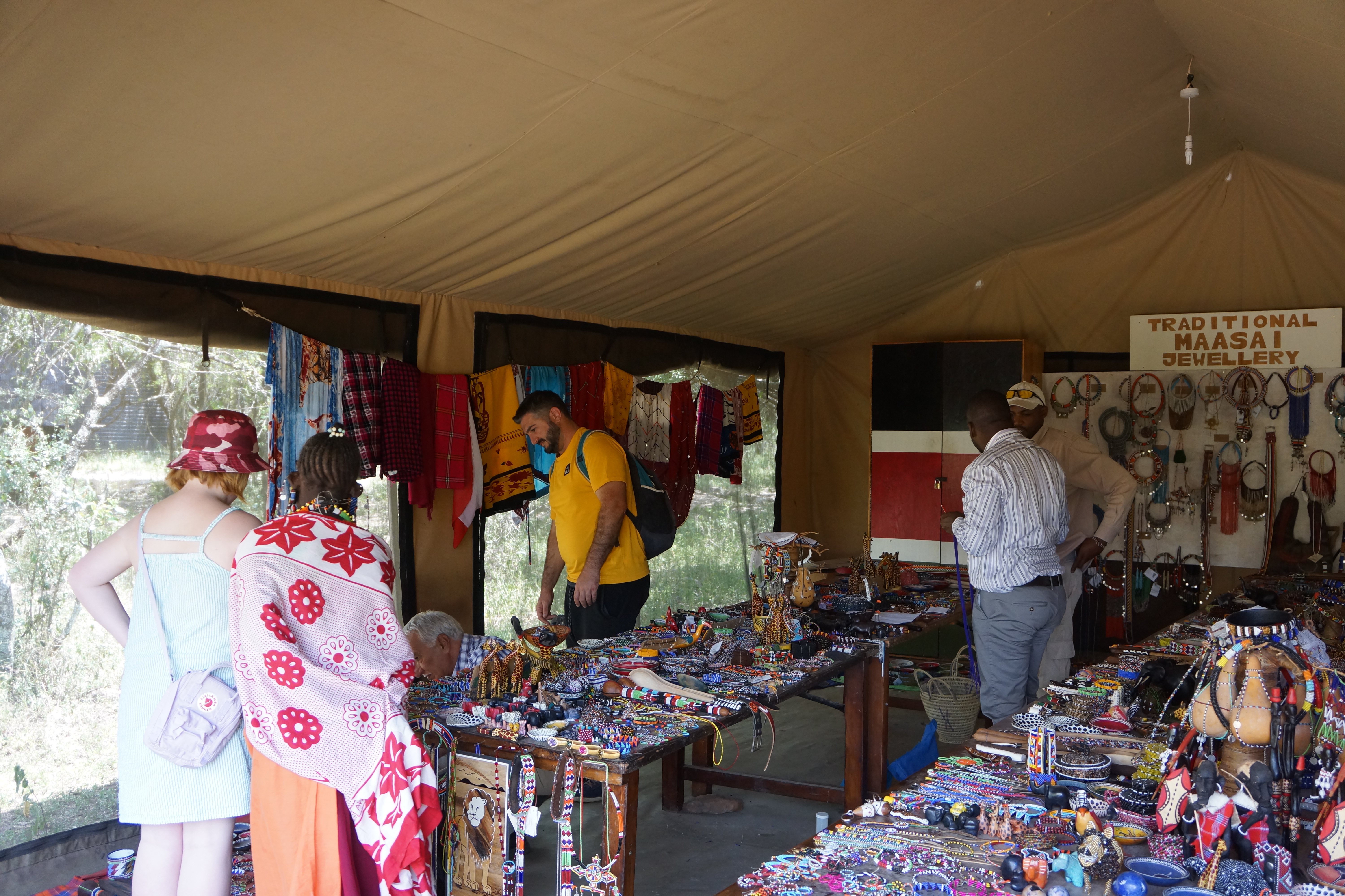 Etter turen tok Domenic med oss på en omvisning rundt i campen. Han viste fram kjøkkenet, vaskeriet og annet som er nødvendig for at gjestene skal ha det bra. Mange av de som jobber på campen, bor også på campen siden de bor langt unna. Domenic bor i Narok som er 1,5 time med motorsykkel, og han drar kun hjem når han har fri. Pengene vi betaler for å bo på campen går med på bevaringsprosjekter og deles med de som eier området, masaiene, og til skoler. På campen har de kokkeskole og dataskole. Pappa var veldig interessert i dataskolen, og de hadde elever i ulike aldersgrupper som lærte alt fra å bruke en PC til programmering og reparasjon. Mange her nede har ikke den samme skolen vi har i Norge, og i den offentlige skolen kan det være mellom 60 til 80 elever i én klasse. Campen hadde også et sted der lokale kvinner solgte håndarbeid. Vi kjøpte med oss noen fine armbånd.