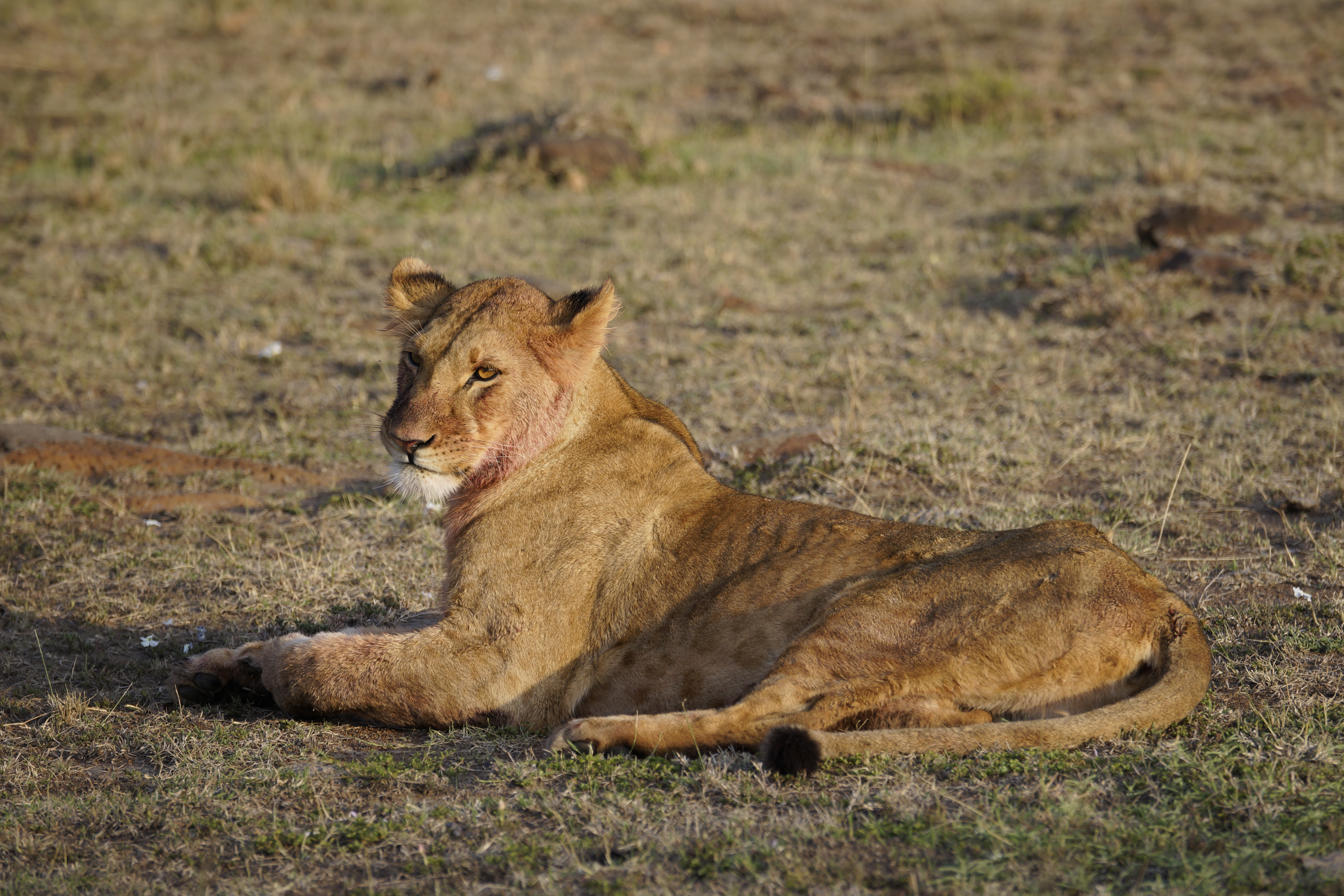 Vi kjører rundt et lite sykke fra campen og kikker på antiloper, massevis av hyener, store elefanter, før Dominic får beskjed at det er en løve like ved som har hatt frokost. Dette er en løvinne og når vi kommer er hun ferdig med frokosten og hyene og sjakalene har tatt over og sloss om restene. Det knurres og hyles.