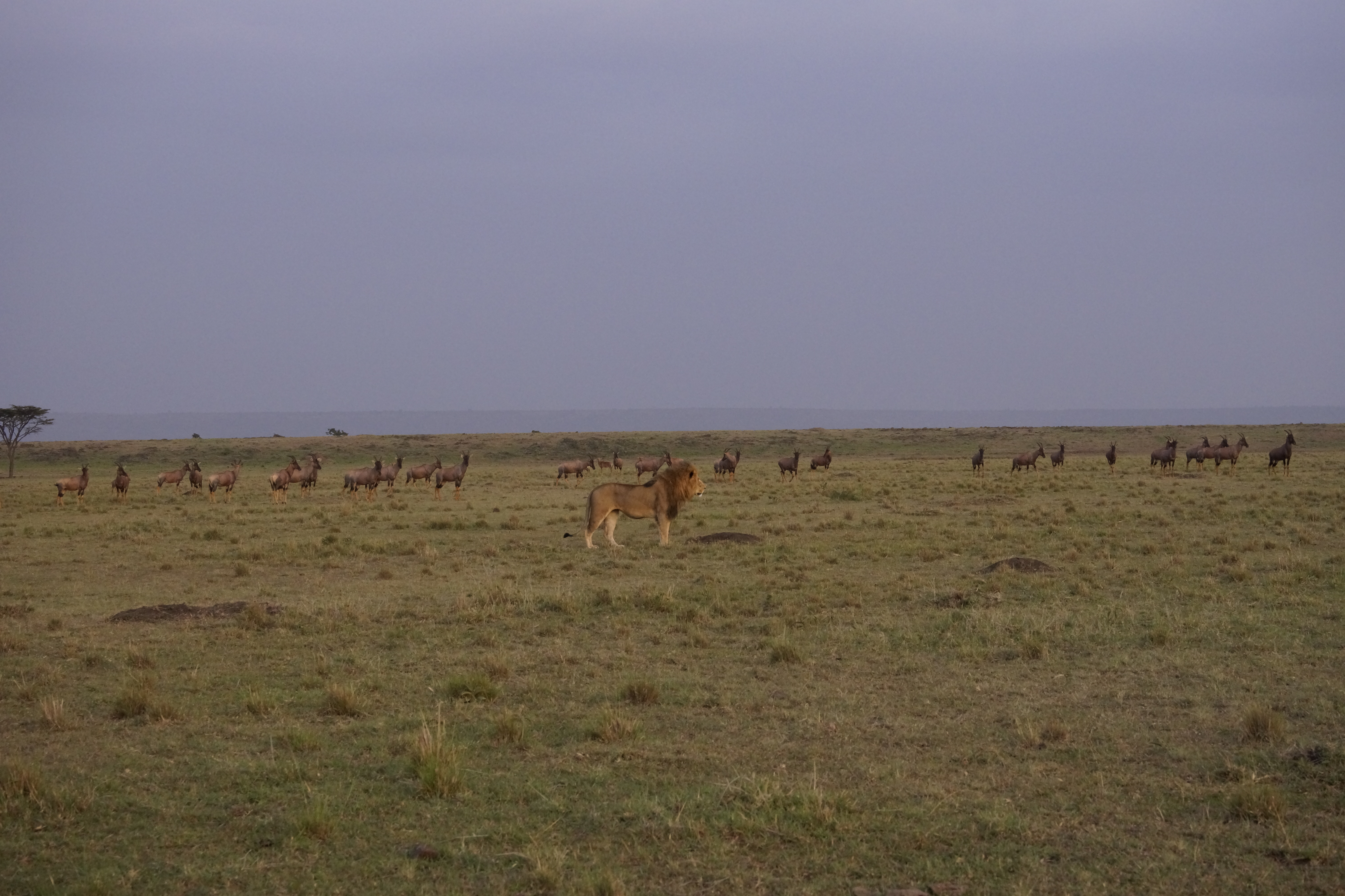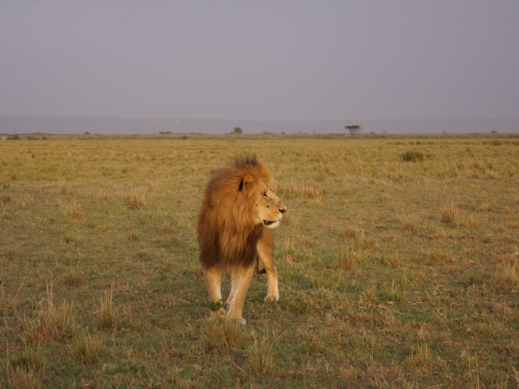 Vi treffer igjen løveparet fra i går, mens solen står opp og ballonger svever over savannen. Løvene er på vei tilbake til der de pleier å sove og de går bare noen meter unna bilen. Jeg får inn en blinkskudd med kameraet som pappa mener kan vinne «Wildlife photographer of the year».