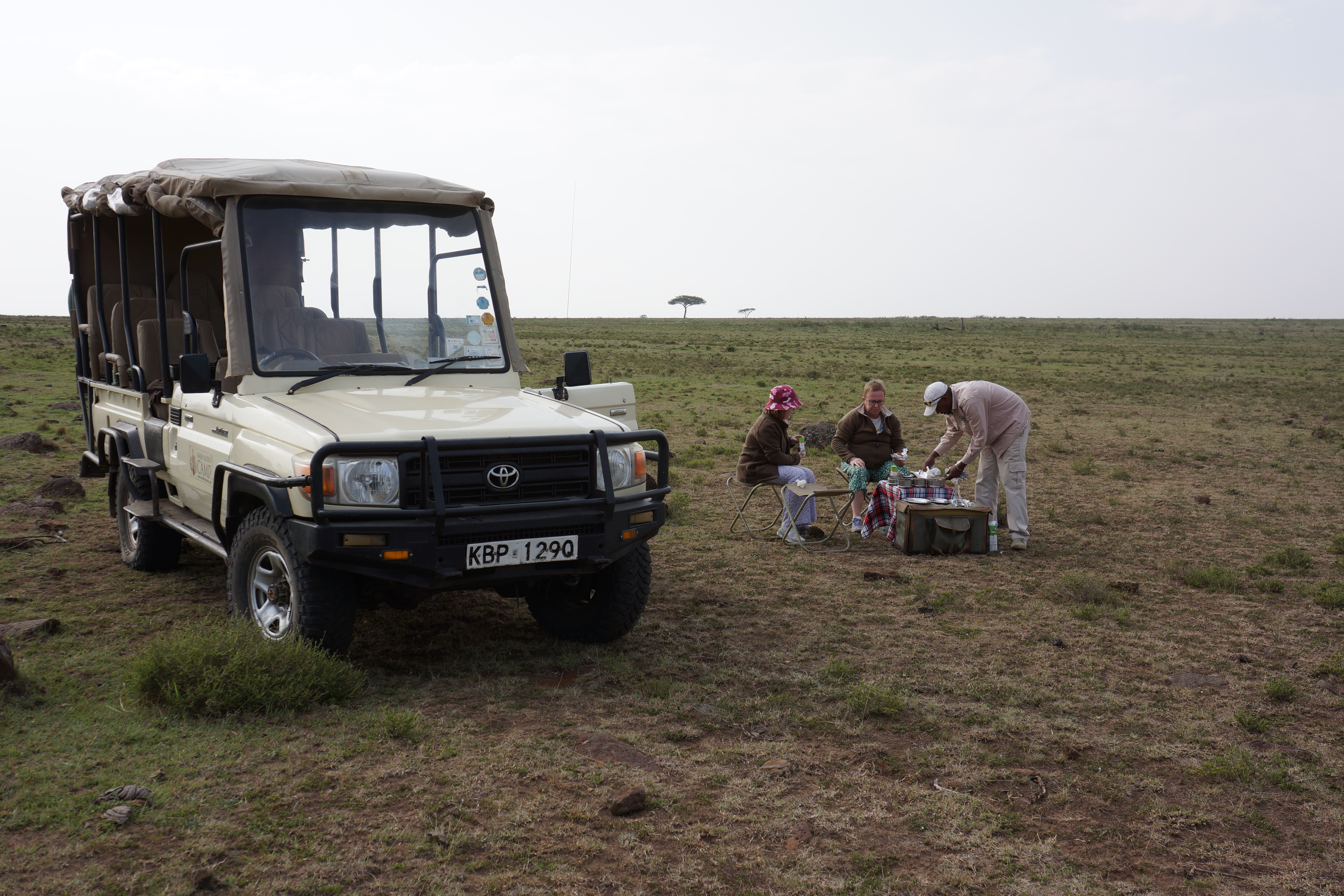 For å få mest mulig ut av safarien har Dominic ordnet med en enkel picnic. Vi stanser en god kjøretur unna villdyrene og tar vår picnic mens solen stadig stiger høyere på himmelen. Nå er det bare tilbake til campen og pakke, og vi er klare for å dra tilbake til Nairobi.