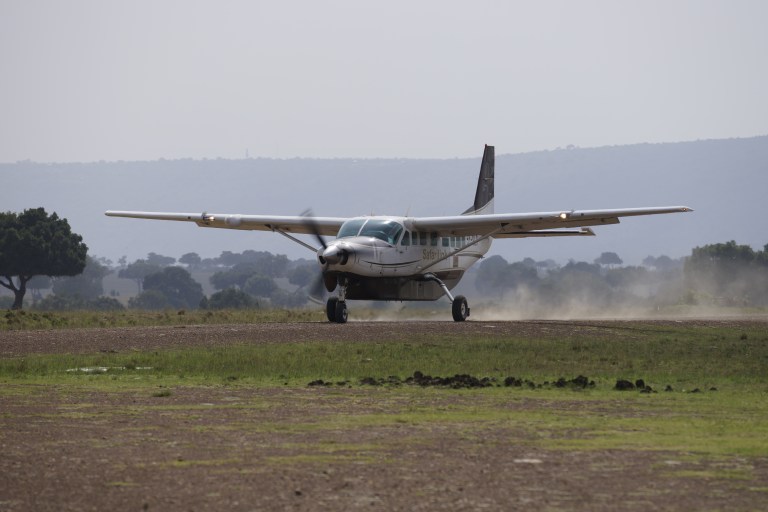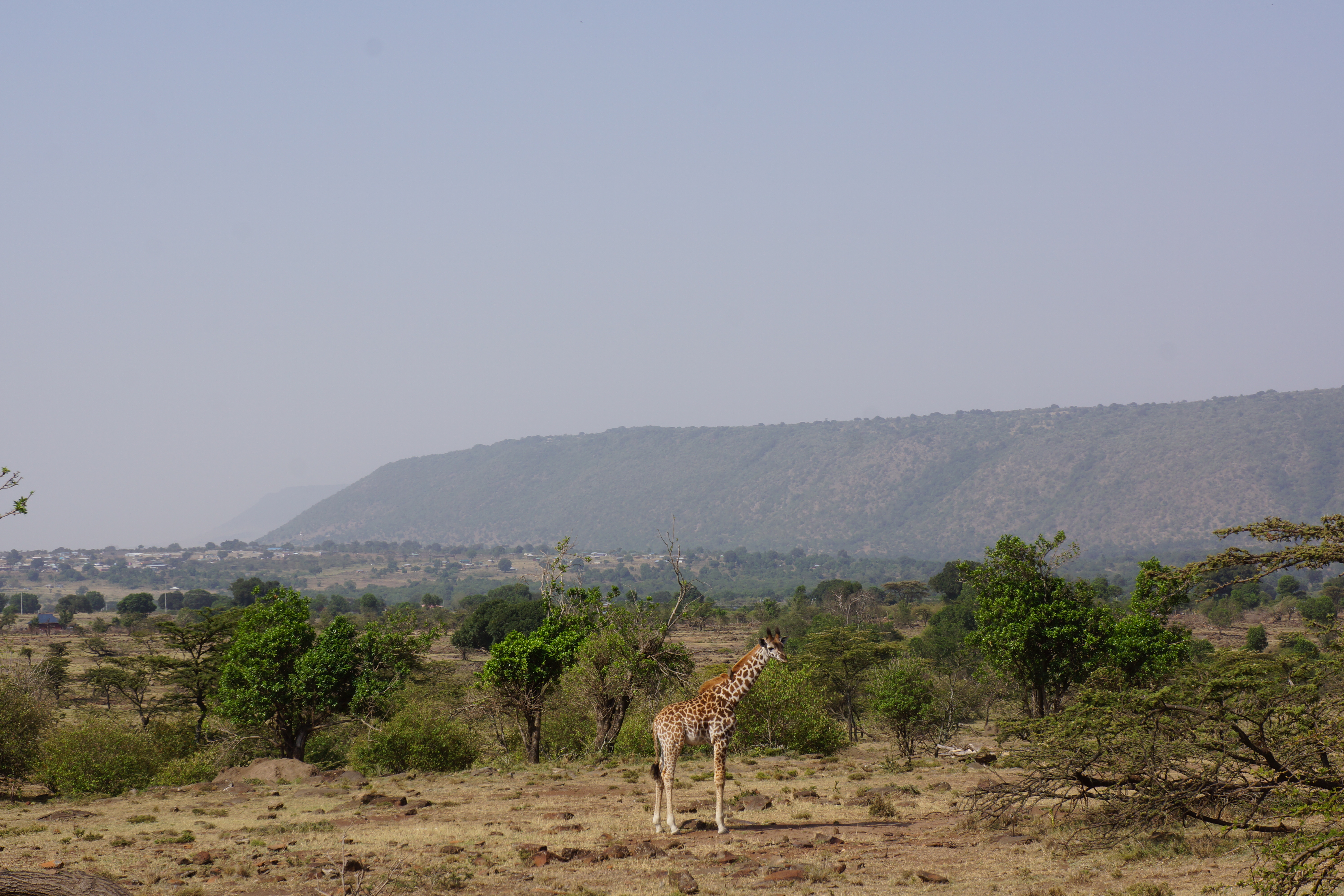På vei til flyplasser prøver vi å se krokodiller, men de er visst vansklelige å se siden de ligger dypt i vannet. Elven Mara er også veldig tørr akkurat nå. De sier at dette kan være på grunn av klimaendringer eller at det stadig er mer jordbruk som bruker elven lenger opp. På den lokale flyplassen ser vi «tårnet» de har – en sjiraff, selvfølgelig, som ser ut over flystripen og flyene som lander. Etter en halvtimes forsinkelse kommer vårt fly, som er det et bittelite fly med plass til 12 passasjerer. Skikkelig bush-fly. Det tar en times til til Nairobi og vi var veldig glade for å sette beina på bakken, etter å ha hoppet og blitt ristet rundt i et altfor trangt å varmt fly. Mamma og pappa var helt sjelvne i beina, mens jeg hadde det helt fint 🙂