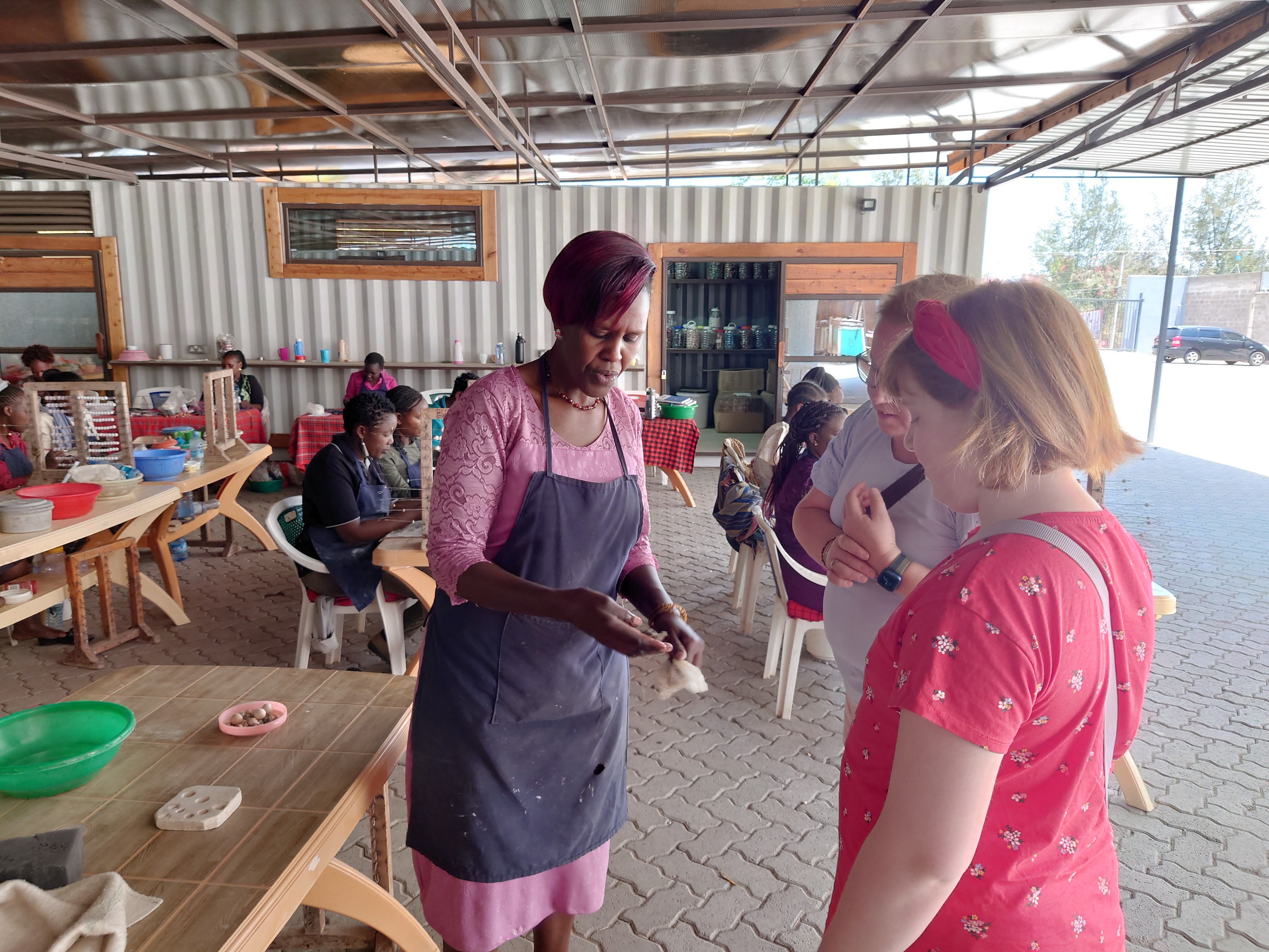 På vei til lunsj stoppet vi på Kazuri Beads, som er en fabrikk der de lager perler av leire. De som jobber her er enslige mødre så alle pengene går til et godt formål. I Kenya er 40% arbeidsledige og Afrikas største slum ligger i Nairobi. Det føles derfor bra å bruke noen penger på disse perlene.