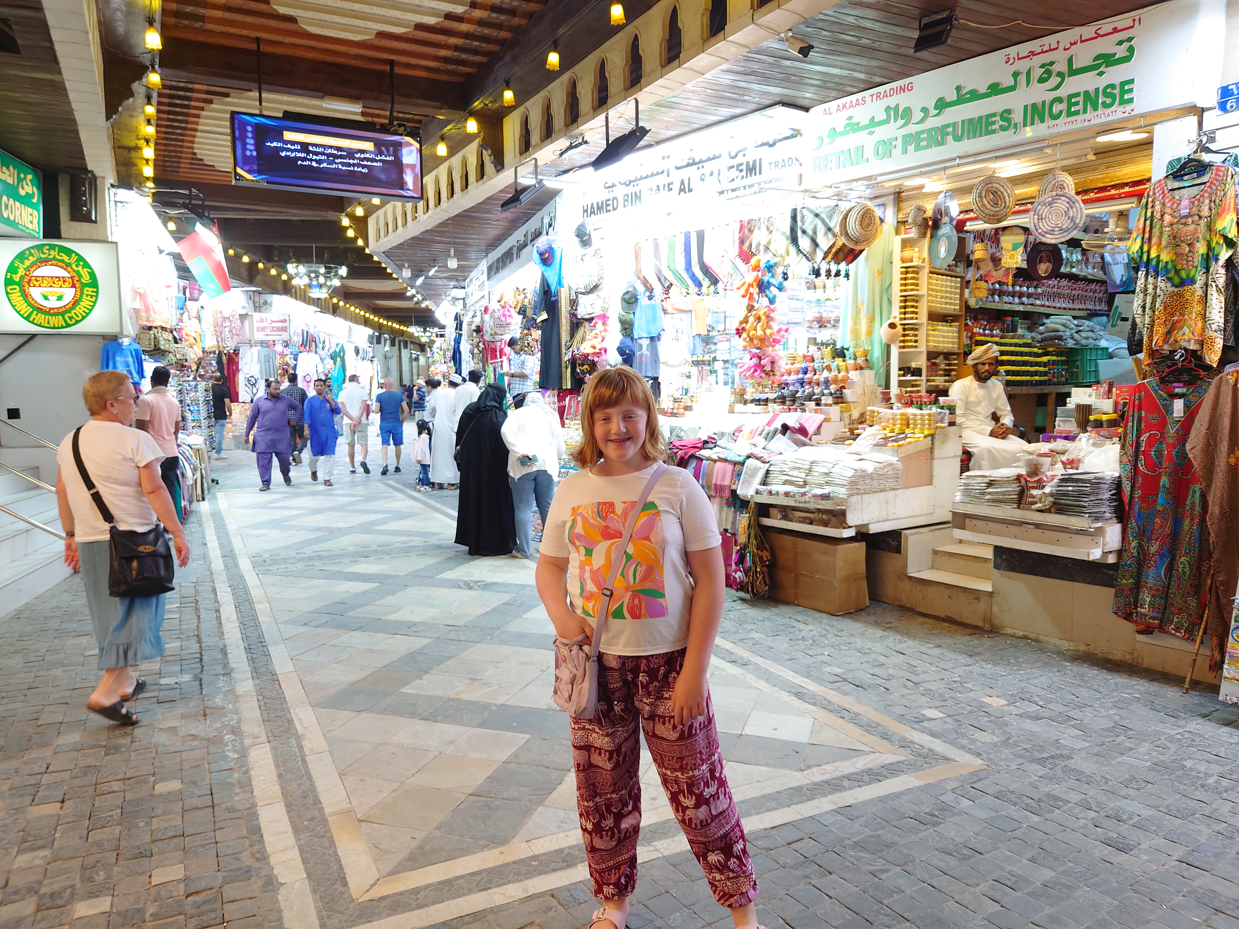 Den gøyeste turen vi har hatt i Muscat var til Muttrah Souq. Her er det hundrevis av små butikker overalt i trange smug. Mange selger omtrent det samme, som for eksempel skjerf. Her er det viktig å spørre om pris og sammenligne ulike butikker, og det er ikke vanskelig å komme ned til halv pris av det selgeren først skulle ha.