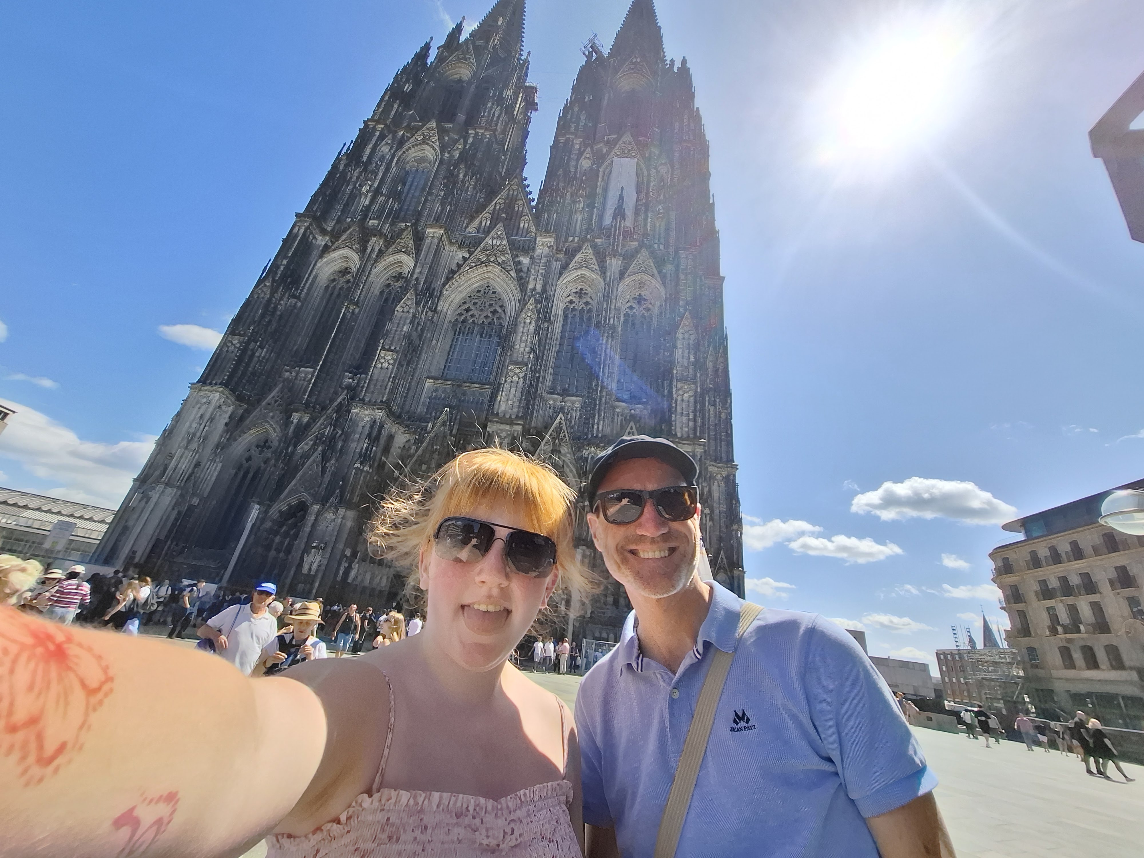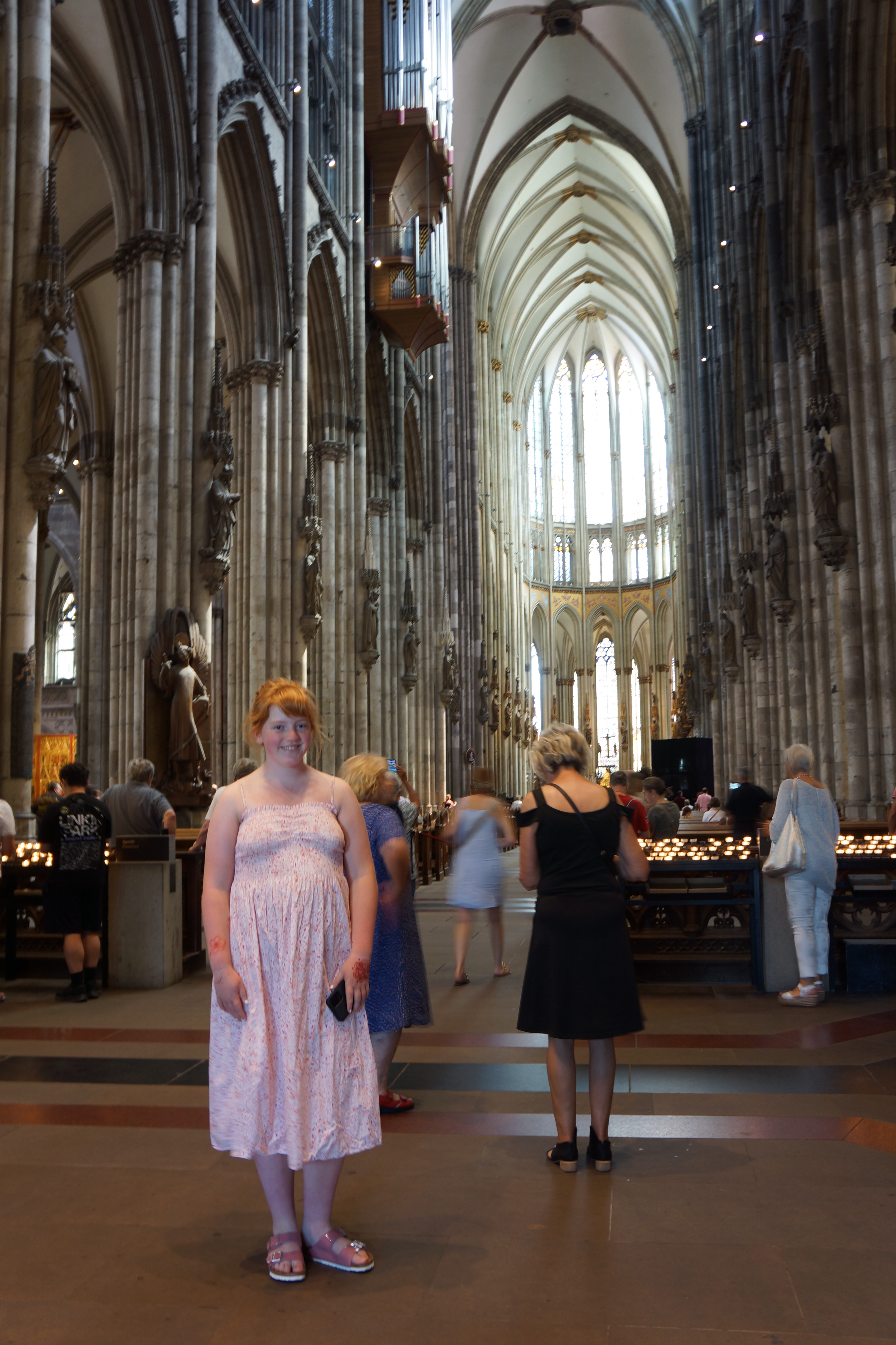 Vi kom oss kjapt til Köln for en pause og se på den store kirken i byen. Den var diger! Både utenfor og inni. Et par bilder og noe kaldt å drikke og neste etappe mot Luxembourg ble startet. Etter hvert ble det så varmt i bilen at mobilen til pappa ikke kunne være tilkoblet bilen, siden den da også ladet og ble enda varmere, og vi mistet navigeringen på skjermen i bilen. Da brukte jeg min mobil og reisen mot Luxembourg kunne fortsette.