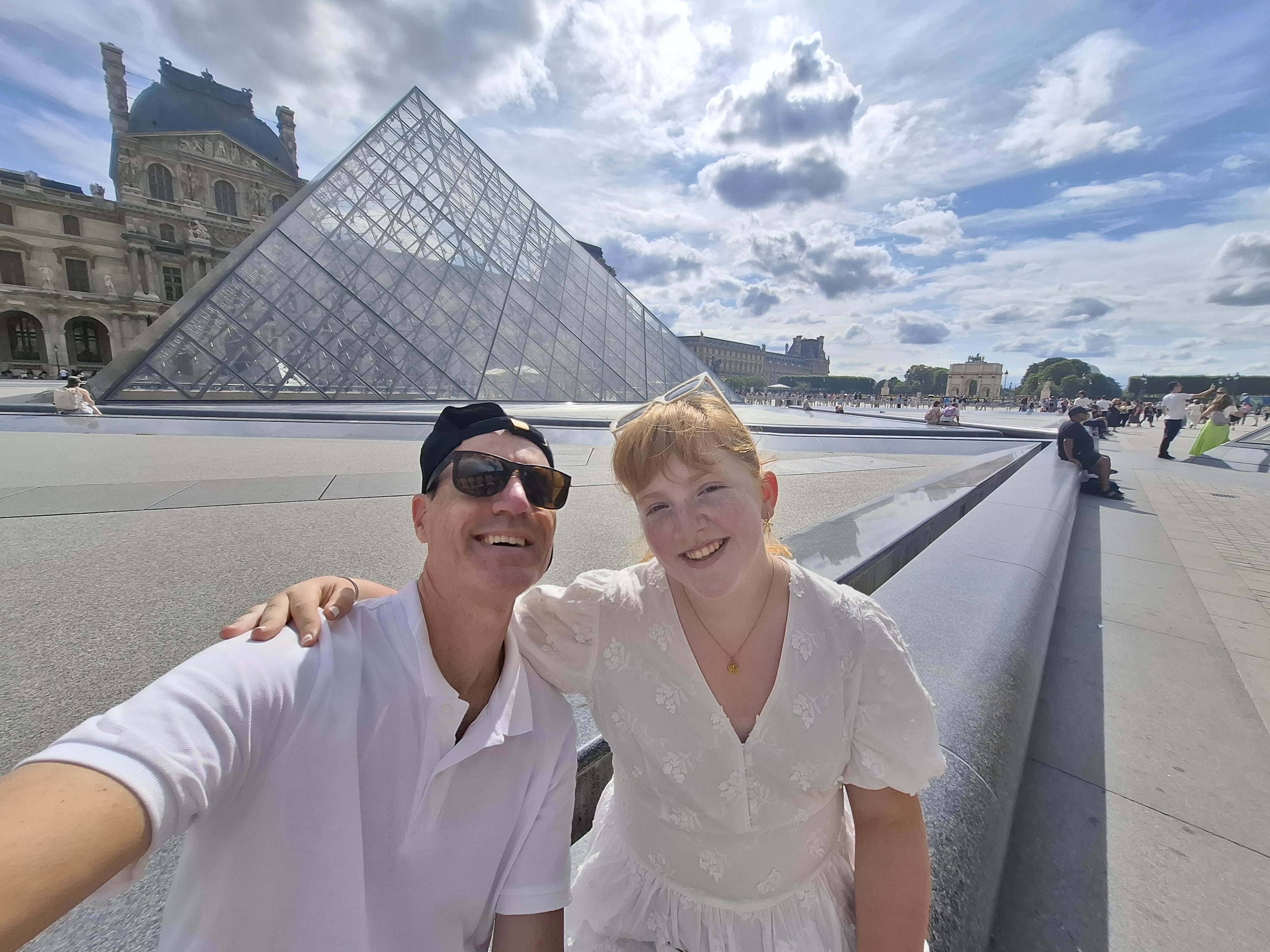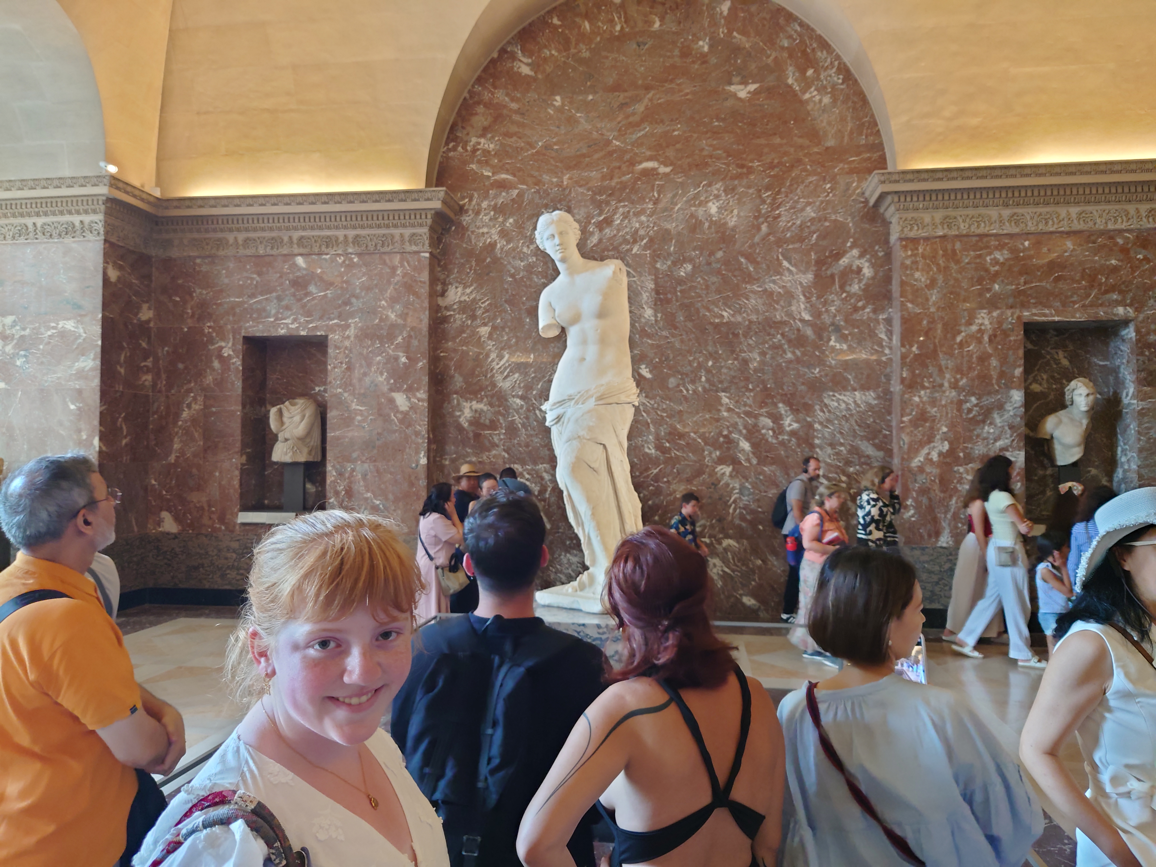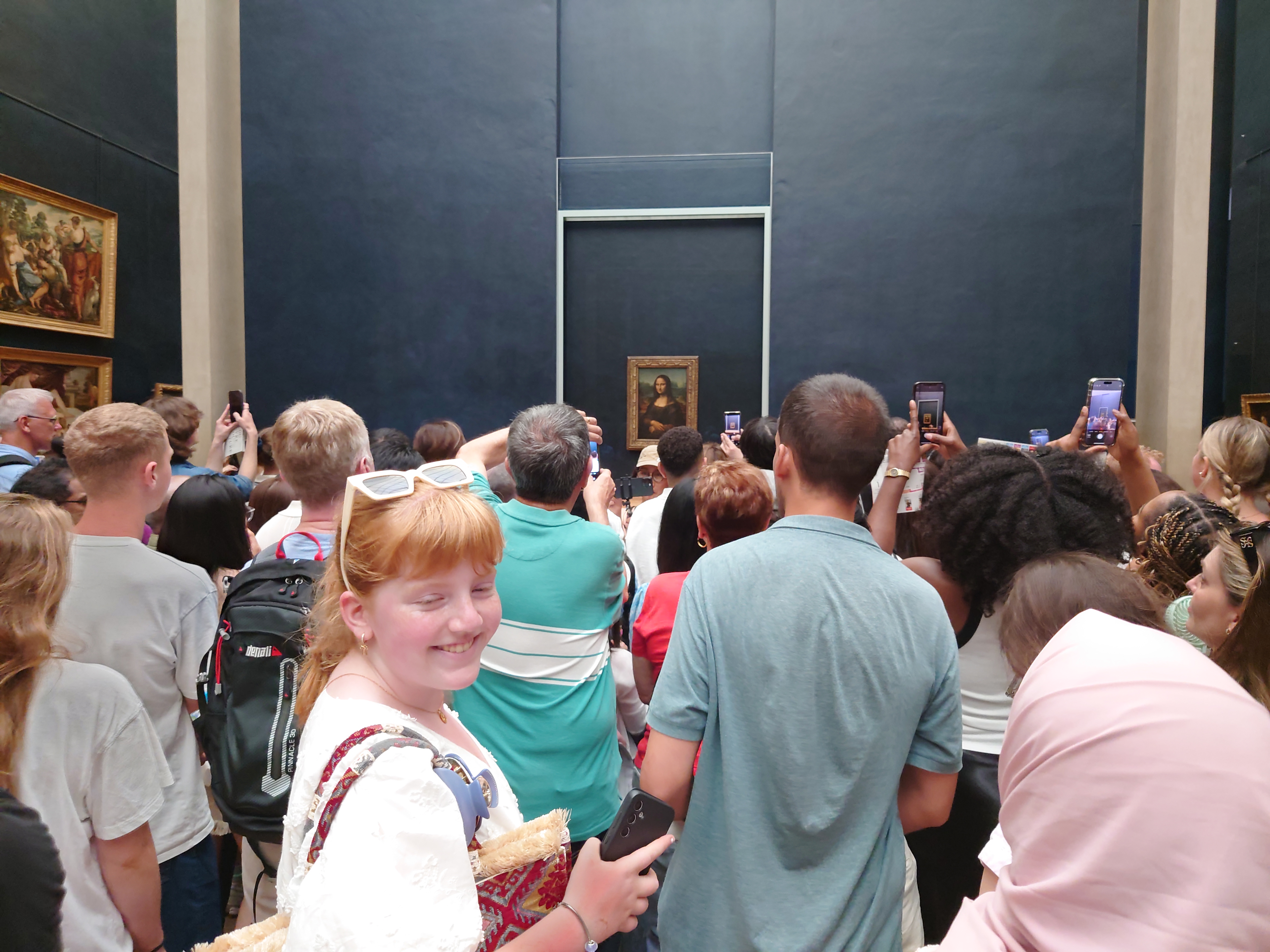 På ettermiddagen hadde vi bestilt billetter til Louvre-museet. Dette er verdens mest besøkte museum, og det er kjempestort. Egentlig kan man bruke flere dager for å få med seg alt, men med en litt overopphetet pappa på slep, ble det en kikk på det viktigste og et kjapt besøk. Alle som kom skulle se Mona Lisa, som er verdens mest berømte maleri, så her sto vi i kø før vi var fremme og fikk tatt en selfie. Vi fikk også med oss statuen av Venus, og maleriet som viser den franske revolusjonen (Liberty Leading the People av Eugène Delacroix).