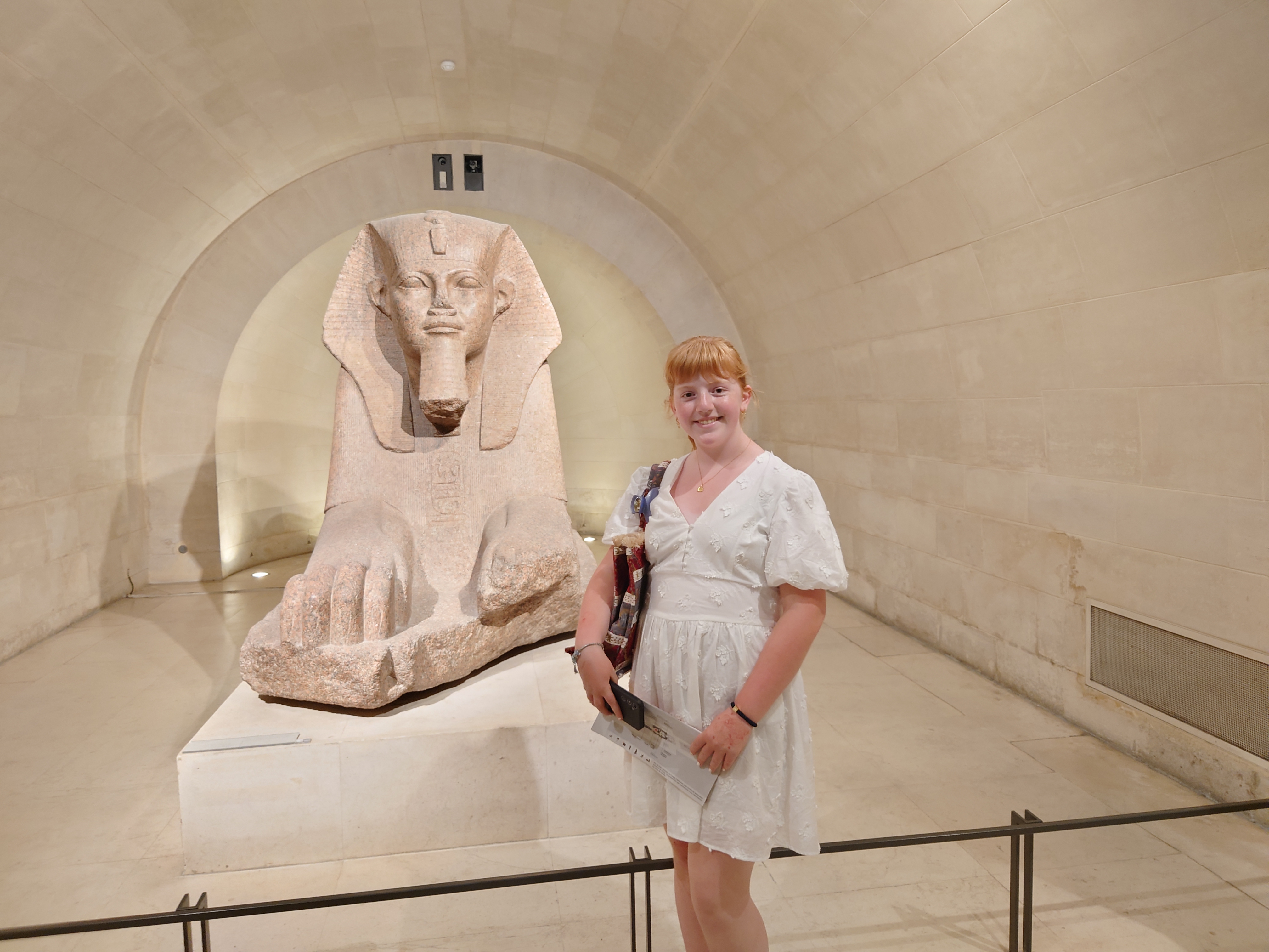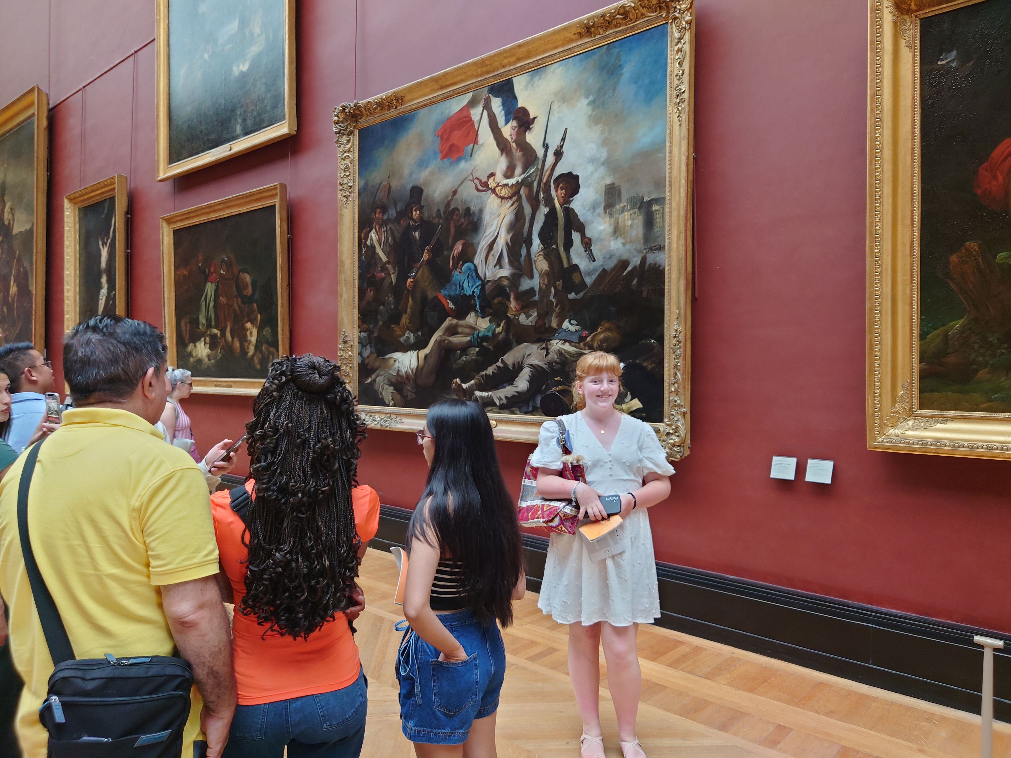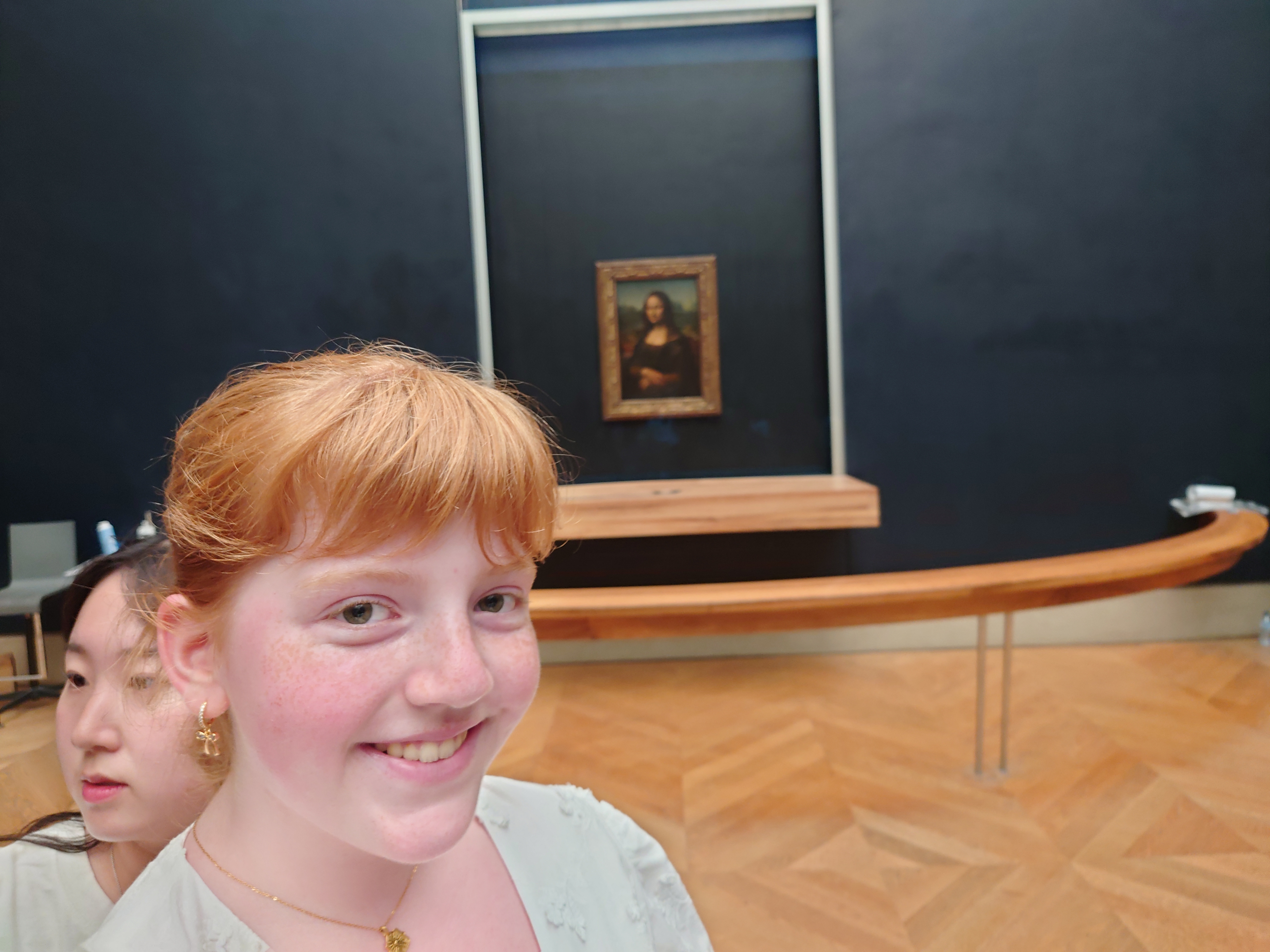 På ettermiddagen hadde vi bestilt billetter til Louvre-museet. Dette er verdens mest besøkte museum, og det er kjempestort. Egentlig kan man bruke flere dager for å få med seg alt, men med en litt overopphetet pappa på slep, ble det en kikk på det viktigste og et kjapt besøk. Alle som kom skulle se Mona Lisa, som er verdens mest berømte maleri, så her sto vi i kø før vi var fremme og fikk tatt en selfie. Vi fikk også med oss statuen av Venus, og maleriet som viser den franske revolusjonen (Liberty Leading the People av Eugène Delacroix).