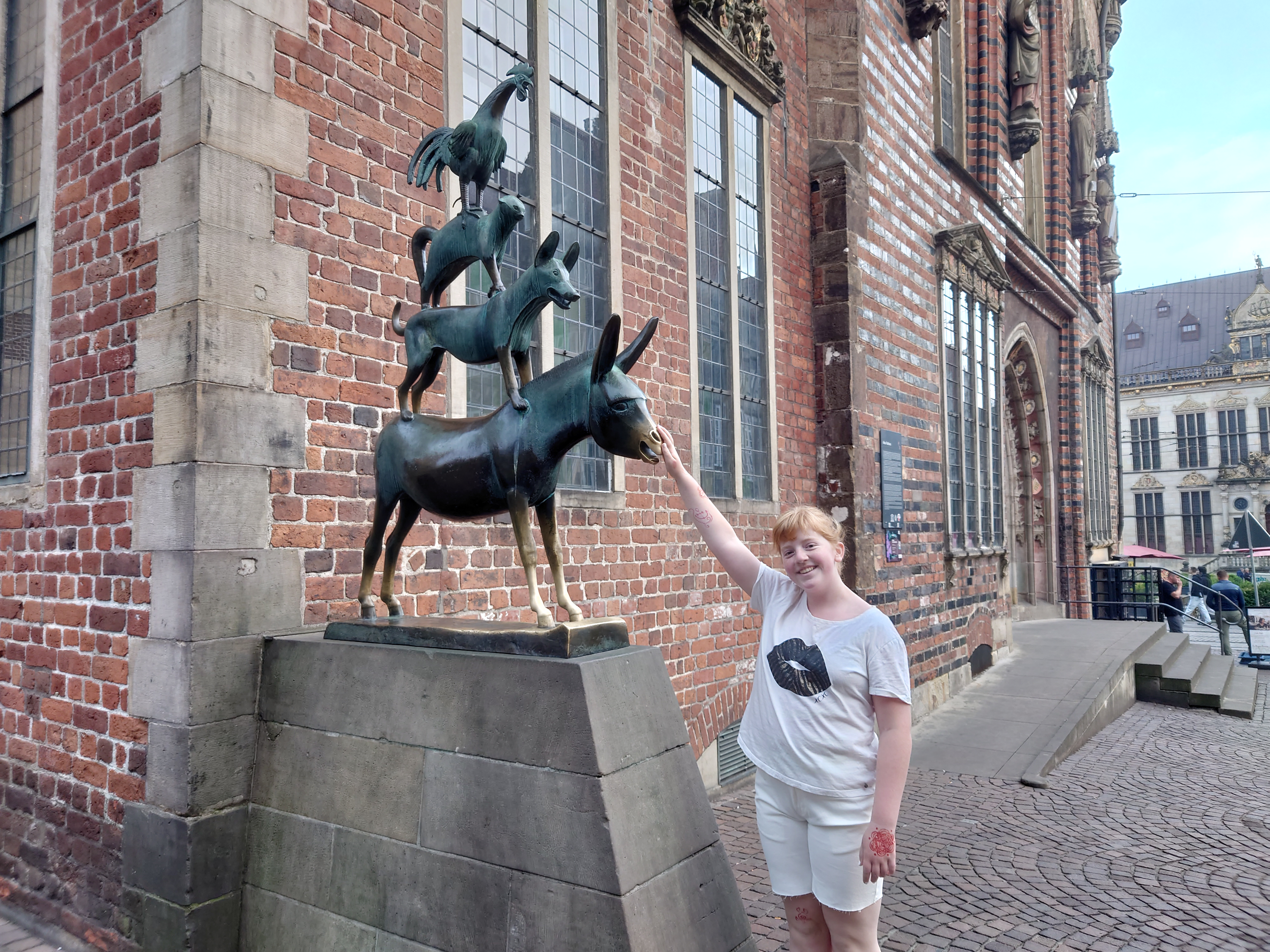 Vi kom til Bremen når kvelden nærmet seg, og vi fikk en kort sightseeing før vi fant et sted å spise. Bymusikantene fra Bremen er et kjent eventyr, og musikantene stod utenfor rådhuset. Like ved var det et stort torv der det var musikk og folk danset. Vi endte opp på en restaurant som så fin ut, der pappa fikk sin wiener-schnitzel og jeg pizza, mens det ble spilt skikkelig tysk metall-musikk av de i restauranten.