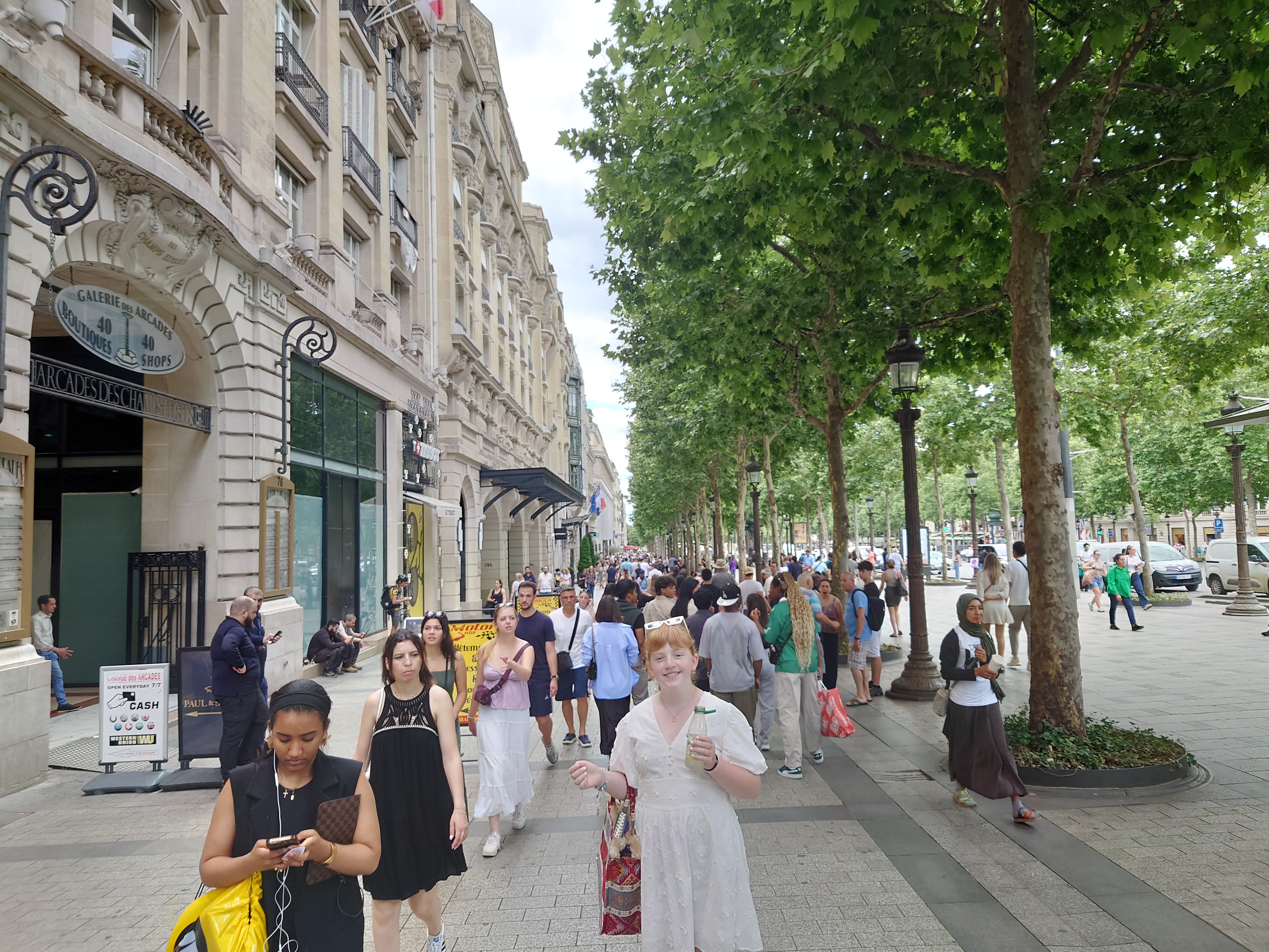 Det var ikke bare bankkortet som ble varmt, for det var over 30 grader i Paris disse dagene. Av og til et lite vindpust eller en sky som ga oss skygge. Heldigvis har de fleste butikkene og kjøpesentrene kjøling.