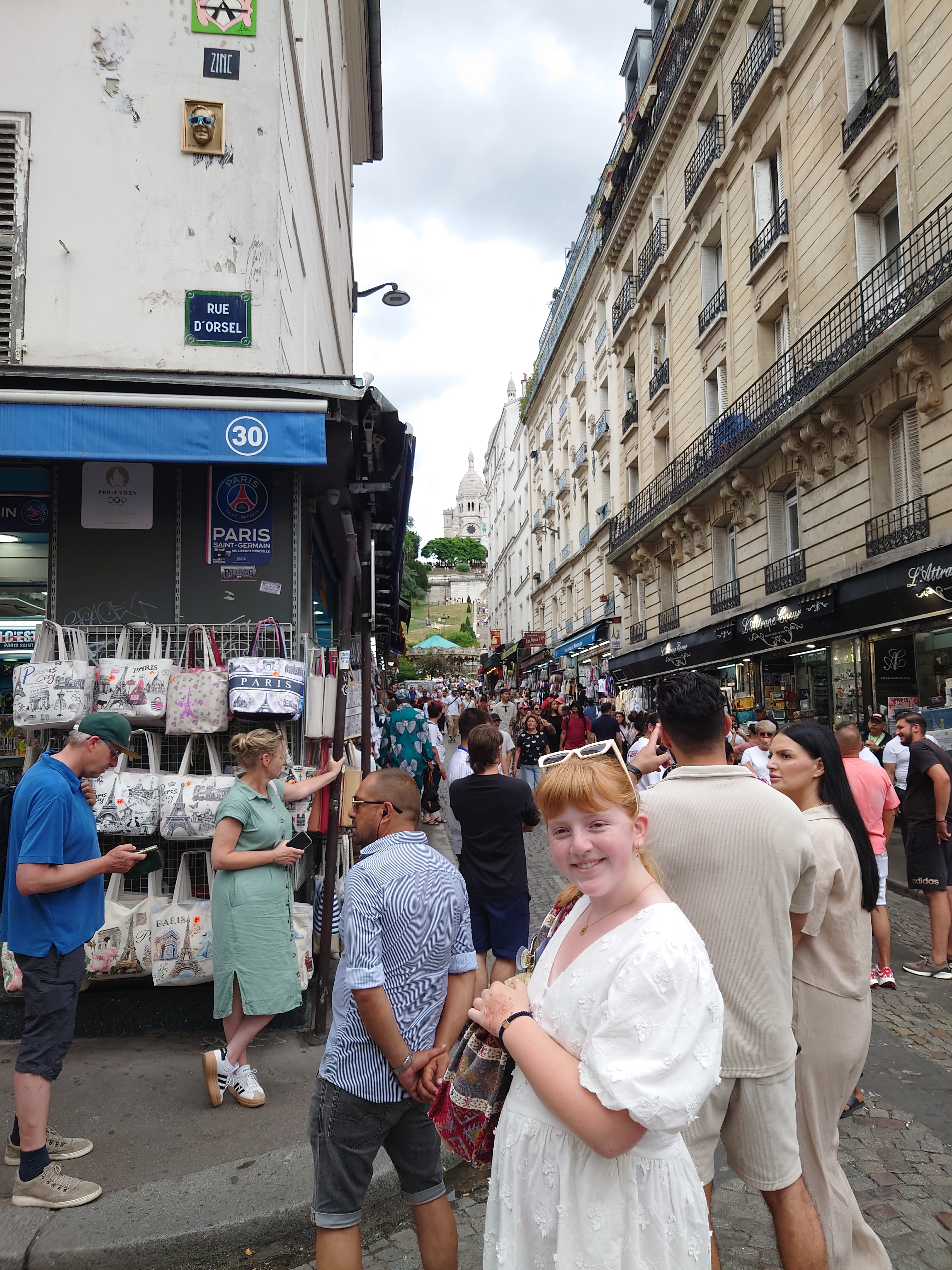 På lørdag startet vi dagen med å dra til Montmartre. Dette er også et populært sted for turister, og de som prøve å scam’e turister. Montmartre er et veldig fint sted i Paris, og på høyden ligger kirken Sacré-Cœur. Vi tok turen innom kirken og da var det gudstjeneste der med nonner som sang. Kirken var stappfull, men det var veldig fint. Siden Paris stort sett er flatt er det fin utsikt over storbyen fra Montmartre.