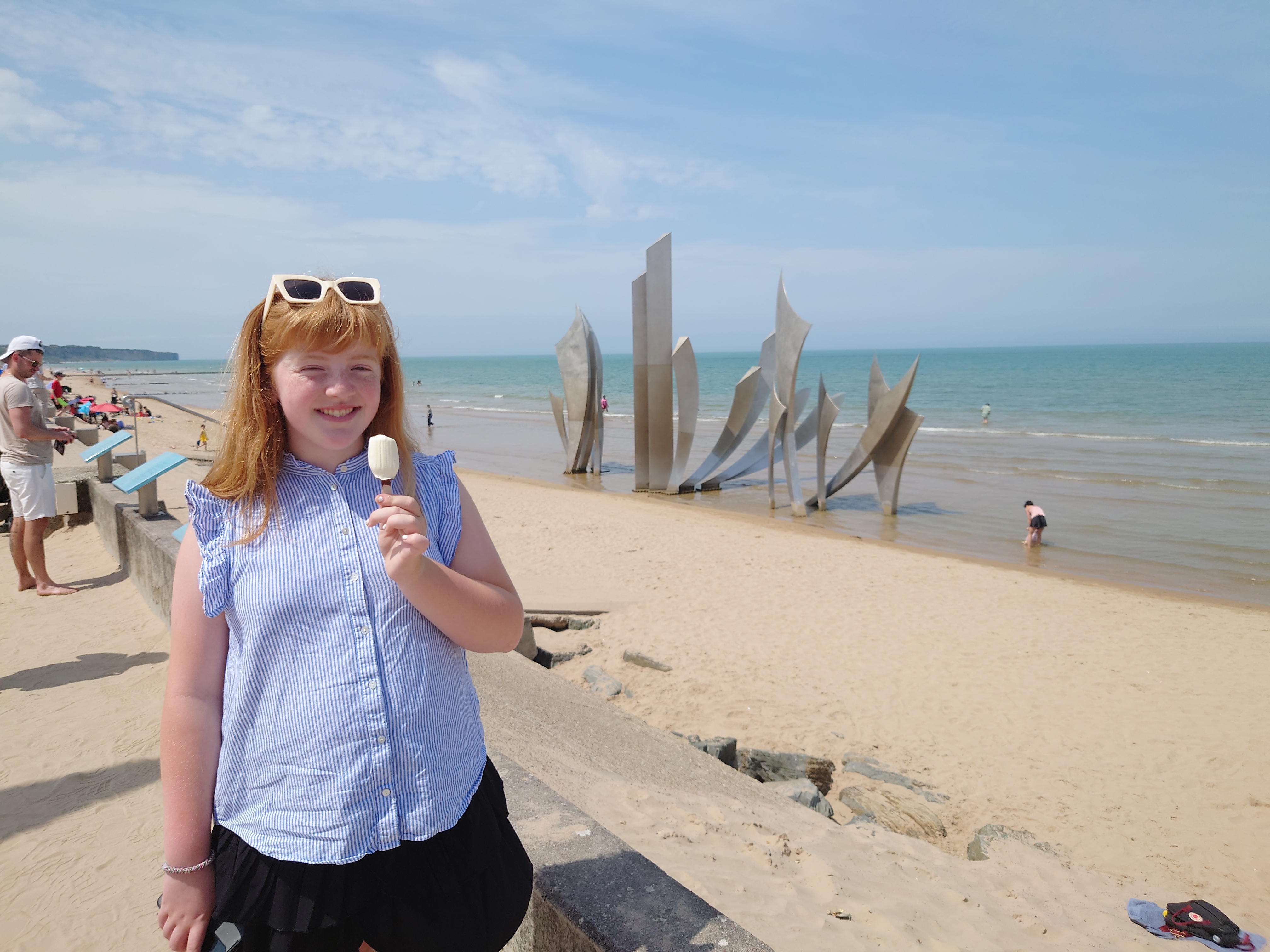 Når vi var ferdig med Mont Saint Michel, tok vi buss tilbake til hotellet, og satte kursen mot Utah Beach. Utah Beach ble brukt av amerikanerne under D-Dagen da de allierte landsatte mange styrker for å prøve å slå Tyskland tilbake under 2. verdenskrig. Vi tok på badebukser og la oss et par timer på stranda og badet i den engelske kanal. Deilig og avkjølende!