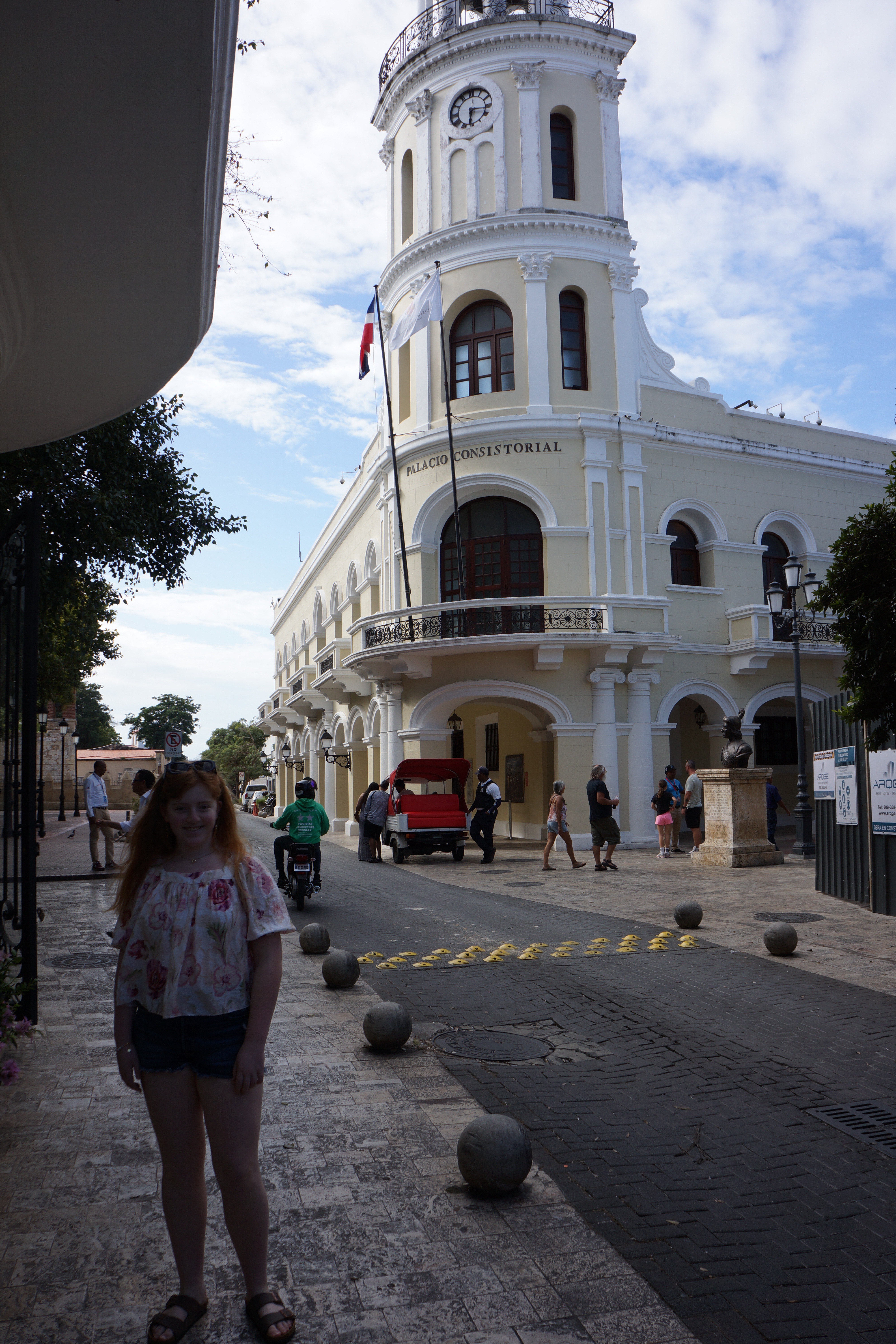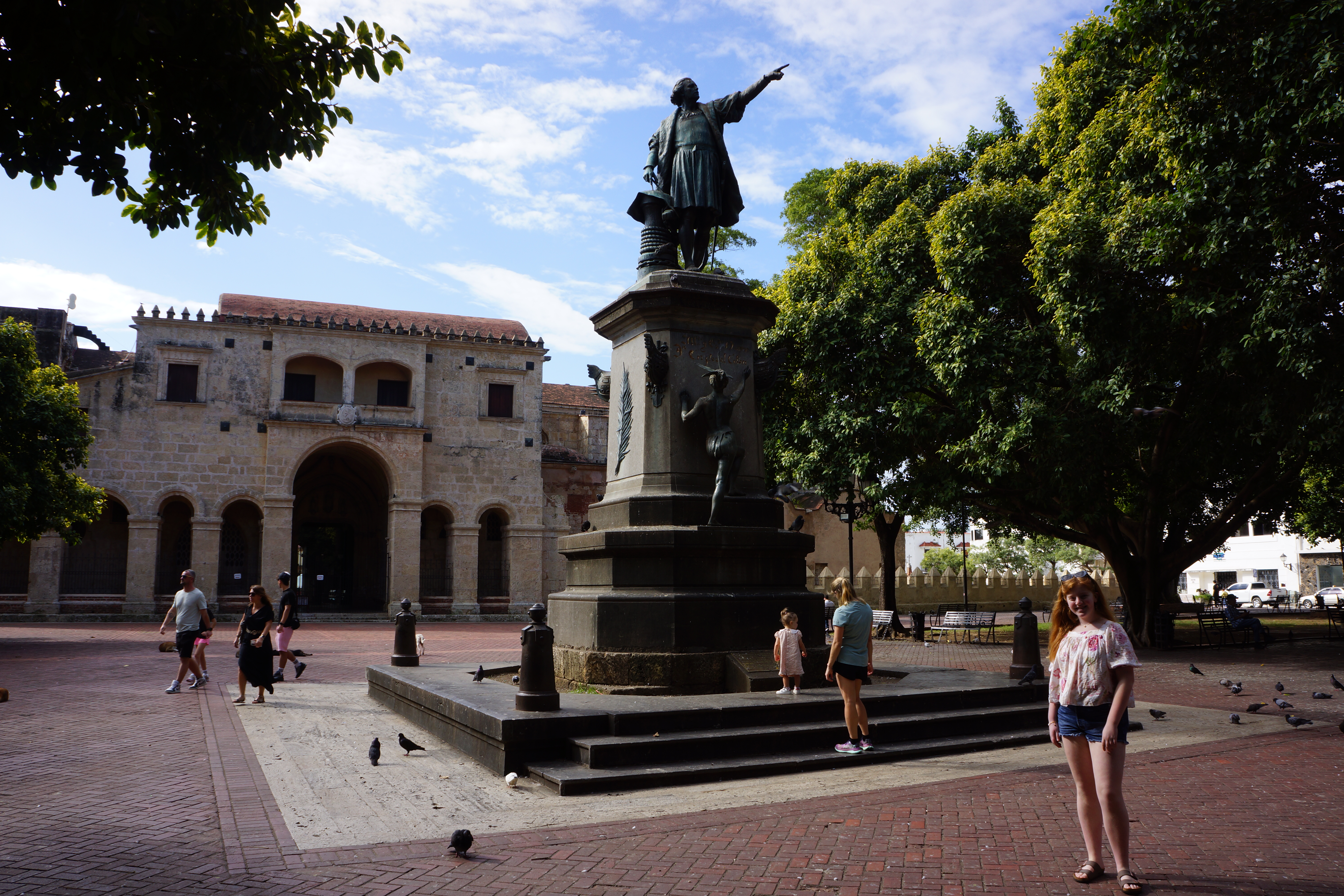 Neste dag skulle vi kjøre til Las Terranas på nordsiden av øya. Siden veien gikk forbi hovedstaden Santo Domingo, valgte vi å ta en stopp der for frokost. Masse kø og trafikk, men vi kom oss inn i den gamle bydelen (Colonial) og fikk sett litt av de historiske stedene. Dette var den første byen som ble grunnlagt under kolonitiden, og på torget har de den første kirken og en statue av Chistoffer Colombus. Som underholdning til frokosten kom det en haug med gatemusikanter som spilte dominikansk musikk. De hadde et instrument som pappa syntes virket ganske kult som han senere vurderte å kjøpe for å sette på peishylla. Vi syntes musikken var så bra at jeg fikk 100 dominikanske pesos til å gi til de siden de hadde lagt en hatt klar til de som ville gi de penger. Etter frokosten gikk vi litt rundt i butikkene, der fant jeg en kjempefin butikk som solgte smykker med larimar. Larimar er en sjelden stein som bare finnes på øya. Pappa kjøpte noen øredobber til meg siden han følte seg sjenerøs den dagen.