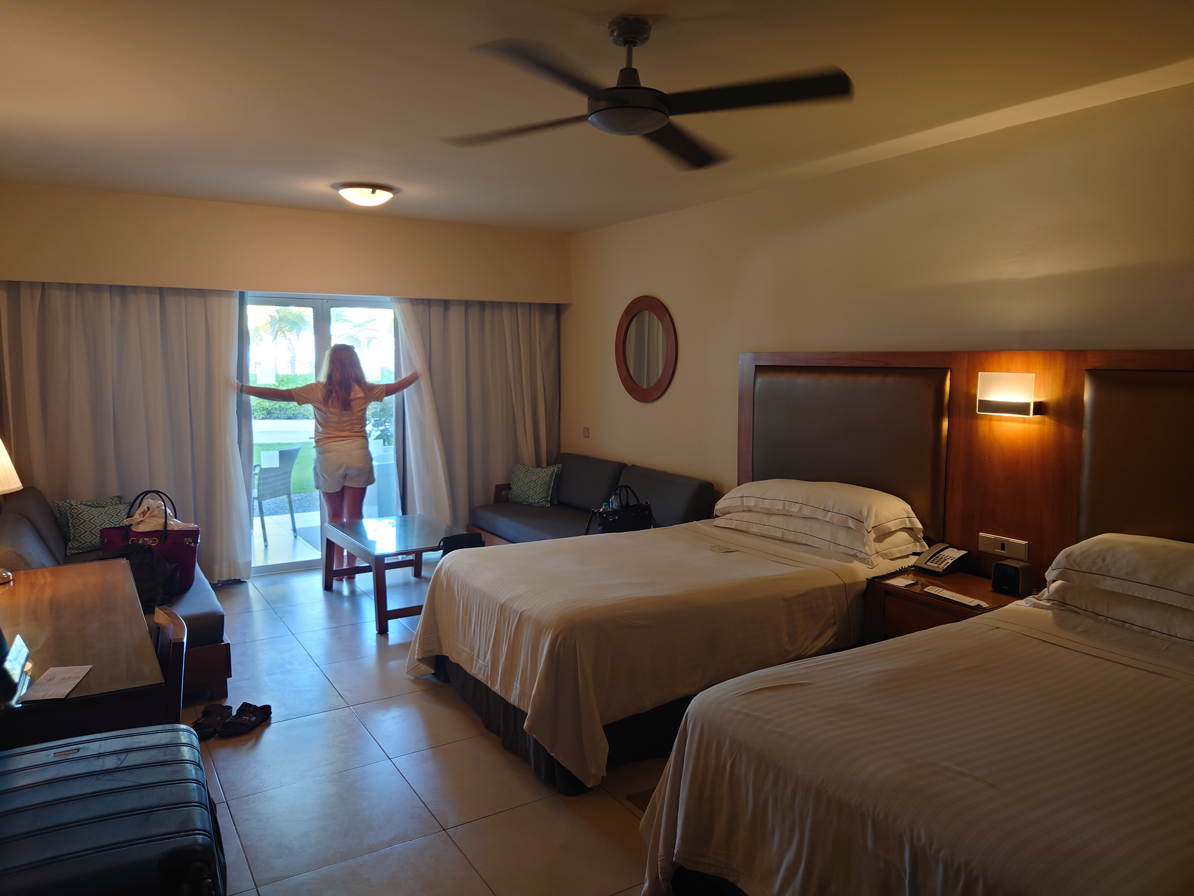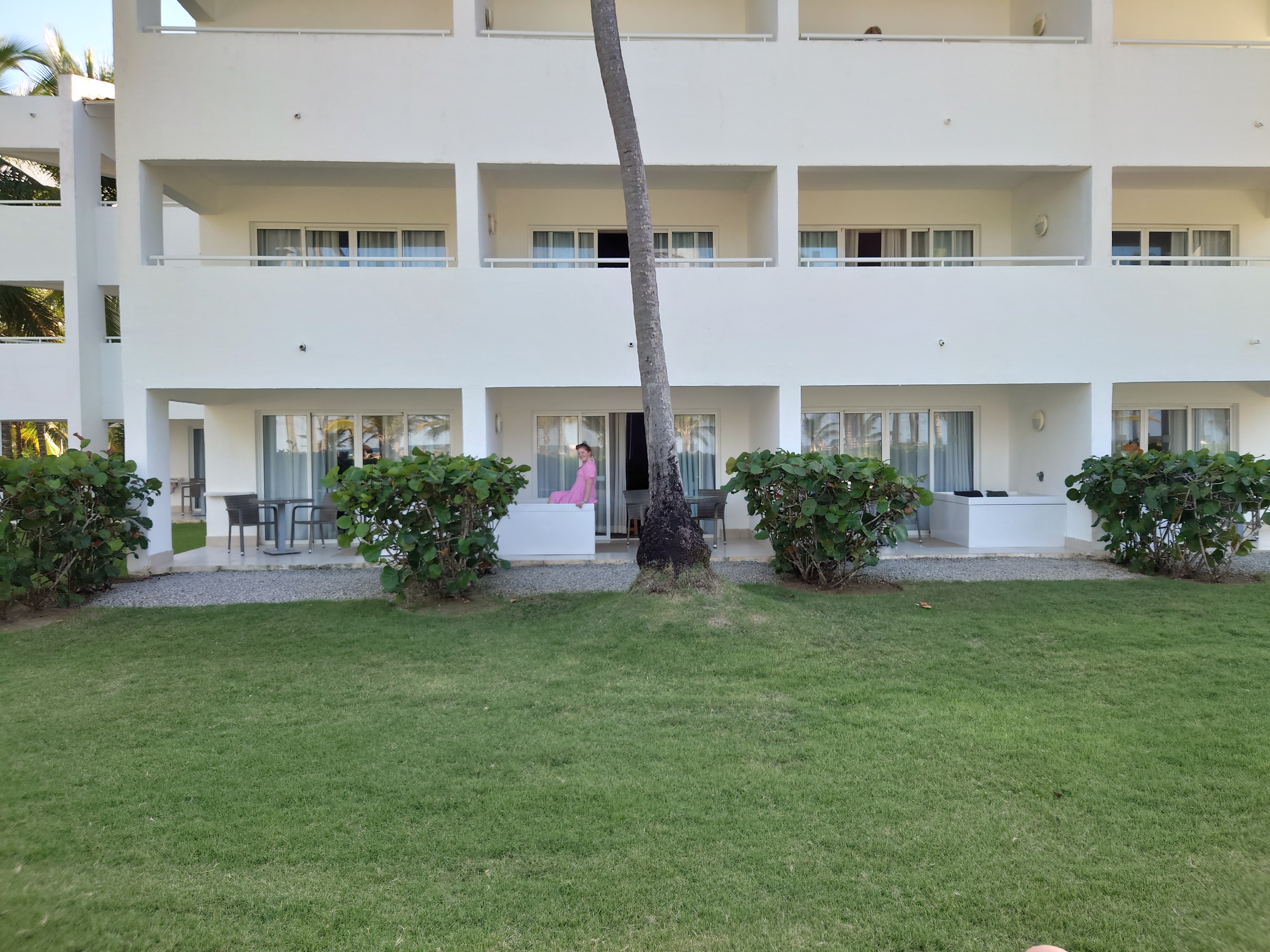 Vi sjekket nå inn på Occidental Punta Cana for de neste 6 nettene. Dette er et digert all-inclusive hotell med over 800 rom, 3 basseng, 5 restauranter med meny, 1 med buffet, snackbarer for burger, pizza og taco, og en haug med barer. Restauranter med meny krever bordreservasjon, og her må en være veldig tidlig ute for å få den tiden du vil. Det er et lite tips.
