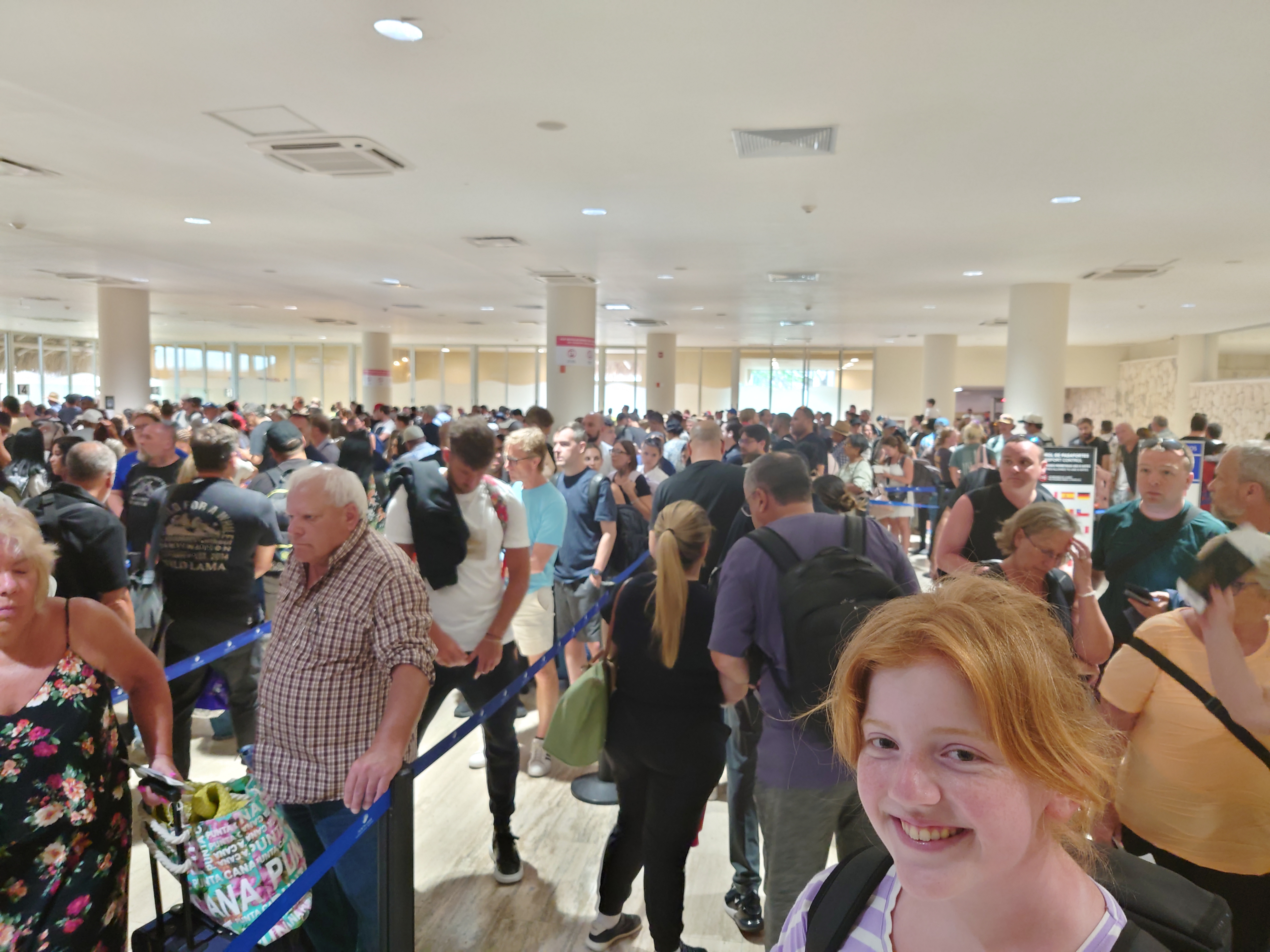Siste dagen i Punta Cana sjekket vi ut av hotell kl 12, og dro til Blue Mall. Dette er et stort og fint kjøpesenter like ved flyplassen. Perfekt for å slå i hjel litt tid. Vi hadde god tid når vi dro til flyplassen. Heldigvis – siden det var kaos ved levering av leiebilen, og enda mer kaos i passkontrollen. Vi brukte over en time på å stå i kø, og det var veldig varmt og mange folk som var stresset. Folk ropte og de som jobbet der slet med å holde kontroll på alle køene når de elektroniske passkontroll maskinene bestemte seg for å ikke fungere.